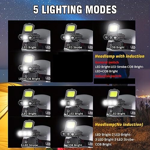 SEAHAVEN 5in1 LED + COB Waterproof Head Torch USB Rechargeable Headlamp Flashlight with Adjustable Band for Swimming, Cycling, Camping & Trekking