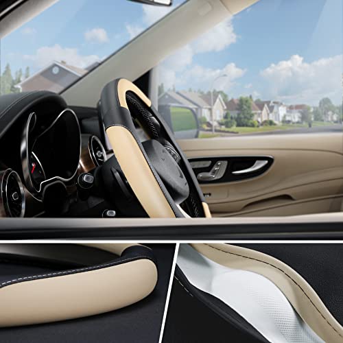 SEG Direct Car Steering Wheel Cover for All Standard-Size Steering Wheels with 14 1/2 inches - 15 inches Outer Diameter, Beige Microfiber Leather
