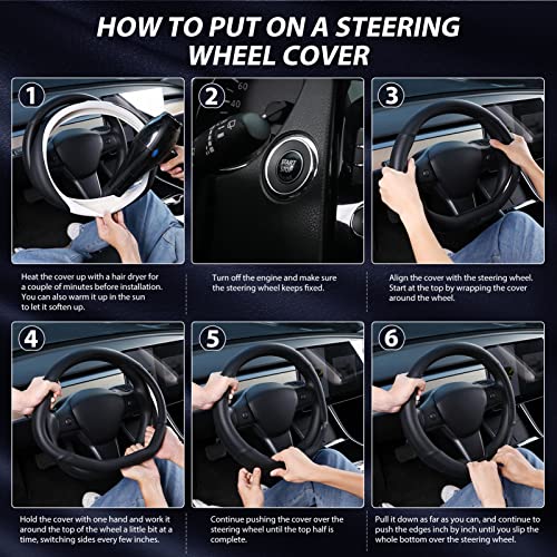 ?D Shape?Nowadays any cars come with a steering wheel that features a flat base that is fancy, sporty, more appealing, and more comfortable. SEG Direct D-type steering wheel covers are precisely designed for 14-14 1/4 inch flat bottom steering wheels. ?Upgrade Your Car Interior?A worn and faded wheel can put a damper on driving enthusiasm. This durable and easy-to-install steering wheel cover is perfect for boosting the appearance of your cabin or hiding a worn or old steering wheel. ?Hand-Saver?Crafted with delicate leatherette material, this soft steering wheel wrap enhances your driving comfort, helps reduce driving fatigue, and makes driving even more enjoyable. ?Non-Slip?Constructed from less slippery microfiber leather exterior and rubber lining, this car wheel cover adds secured safety performance when driving. It also protects your steering wheel from sunburn, scratches, fading, wear, and dirt. ?Ready to Install?Warm up the steering cover for munites, and slip it on your steering wheel. Installation is fairly easy, any adult can easily install this steering wheel cover.