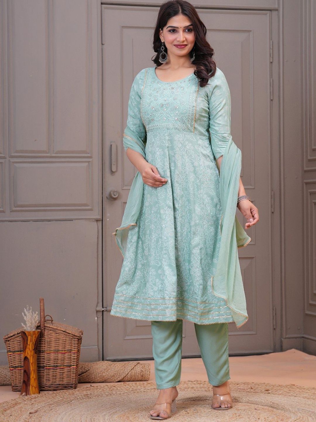 SHALIG Women Floral Printed Regular Kurta with Trousers & Dupatta