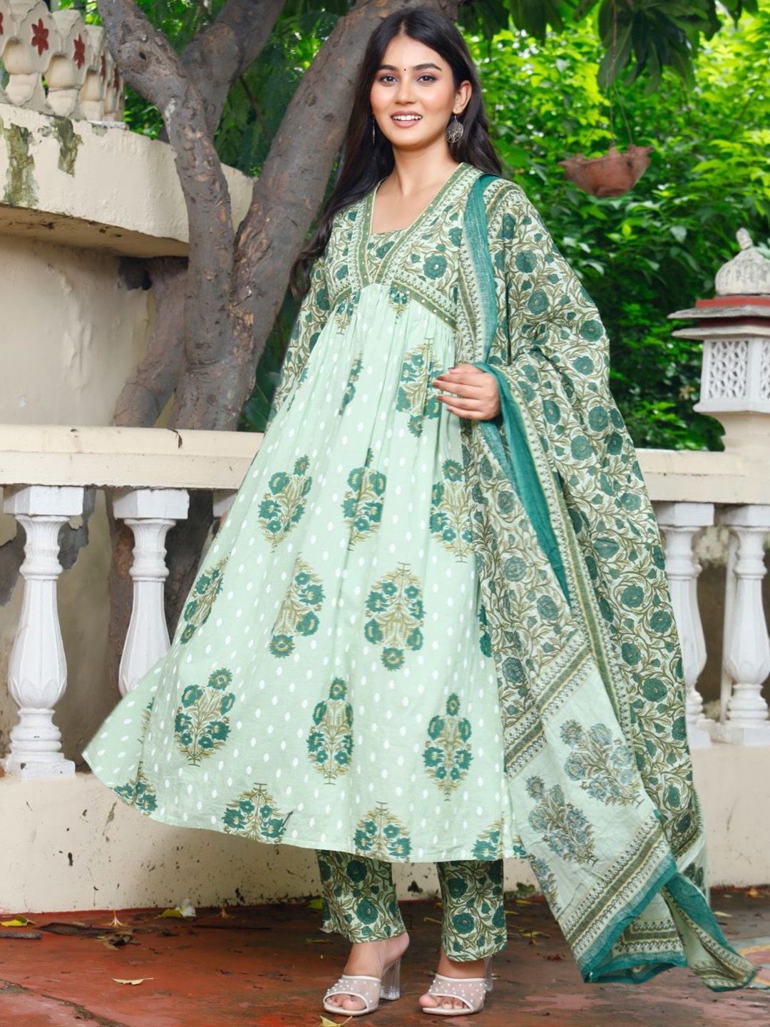 Buy this stylish Shivanya Handicrafts Women Floral Printed Cotton A-Line Kurta with Palazzos & Dupatta at Marincart Nepal. This product offers great quality and value. Perfect for those looking for the latest trends in fashion. Get yours now at unbeatable prices.
