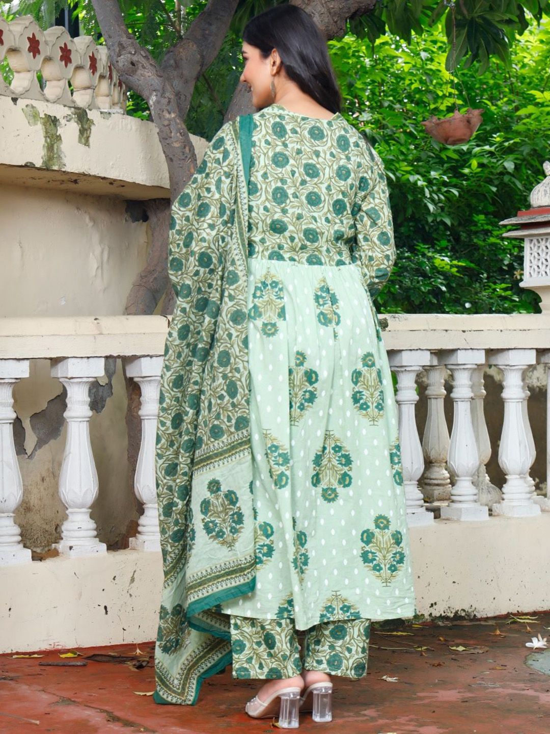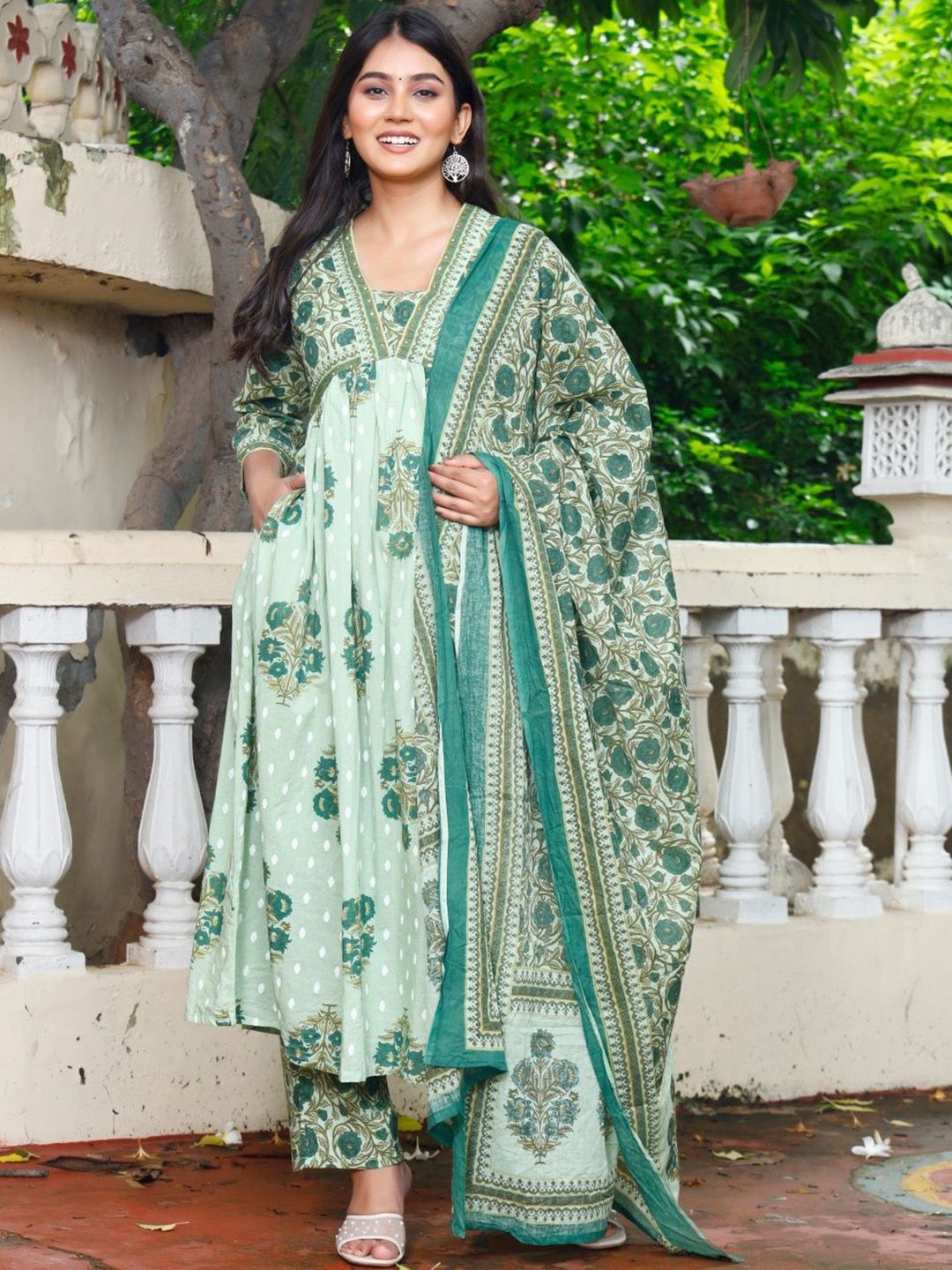 Shivanya Handicrafts Women Floral Printed Cotton A-Line Kurta with Palazzos & Dupatta