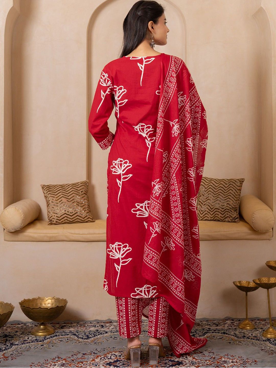 Buy this stylish SHIVARA Floral Printed V-Neck Sequinned Pure Cotton Straight Kurta With Trousers & Dupatta at Marincart Nepal. This product offers great quality and value. Perfect for those looking for the latest trends in fashion. Get yours now at unbeatable prices.