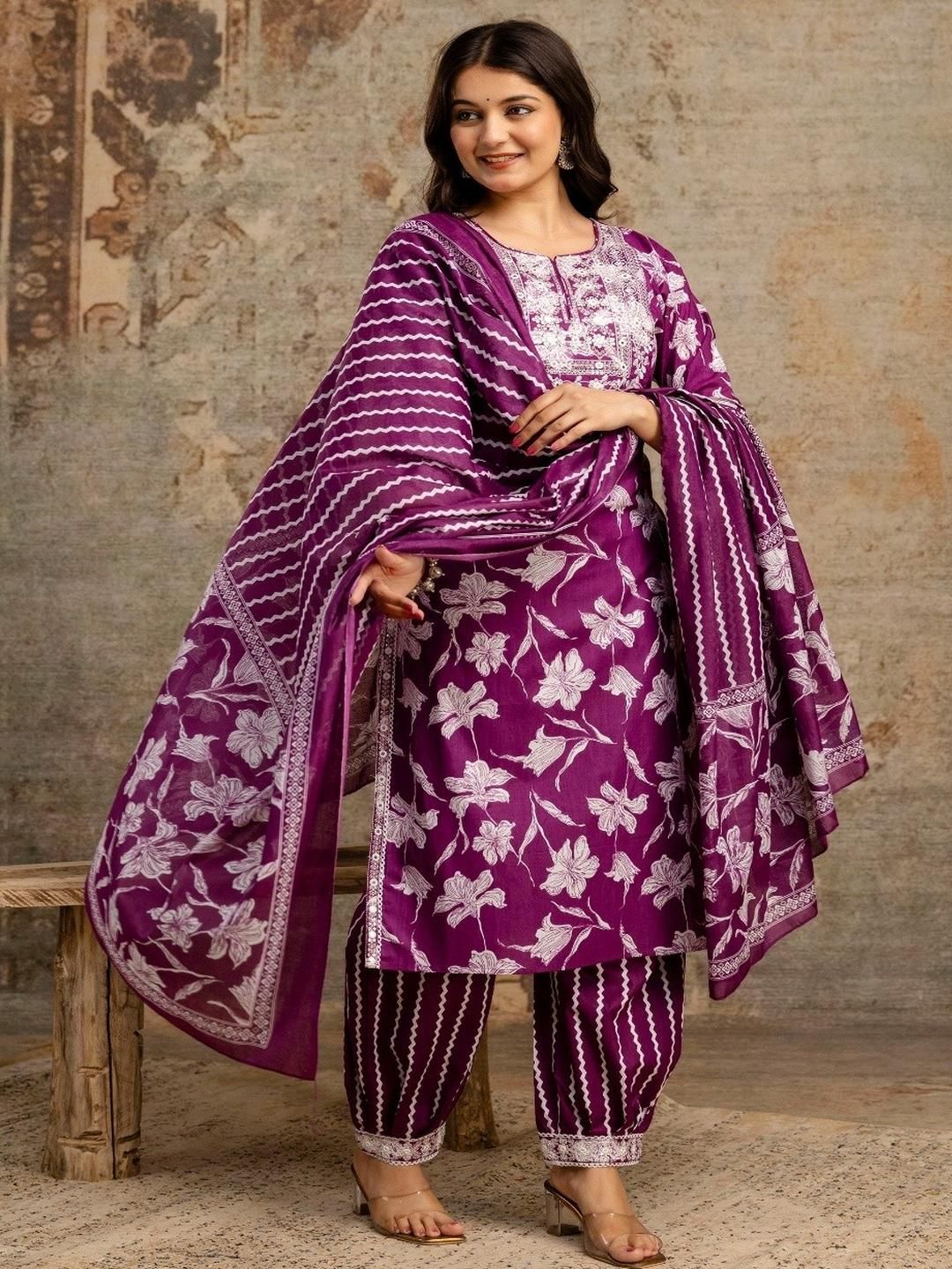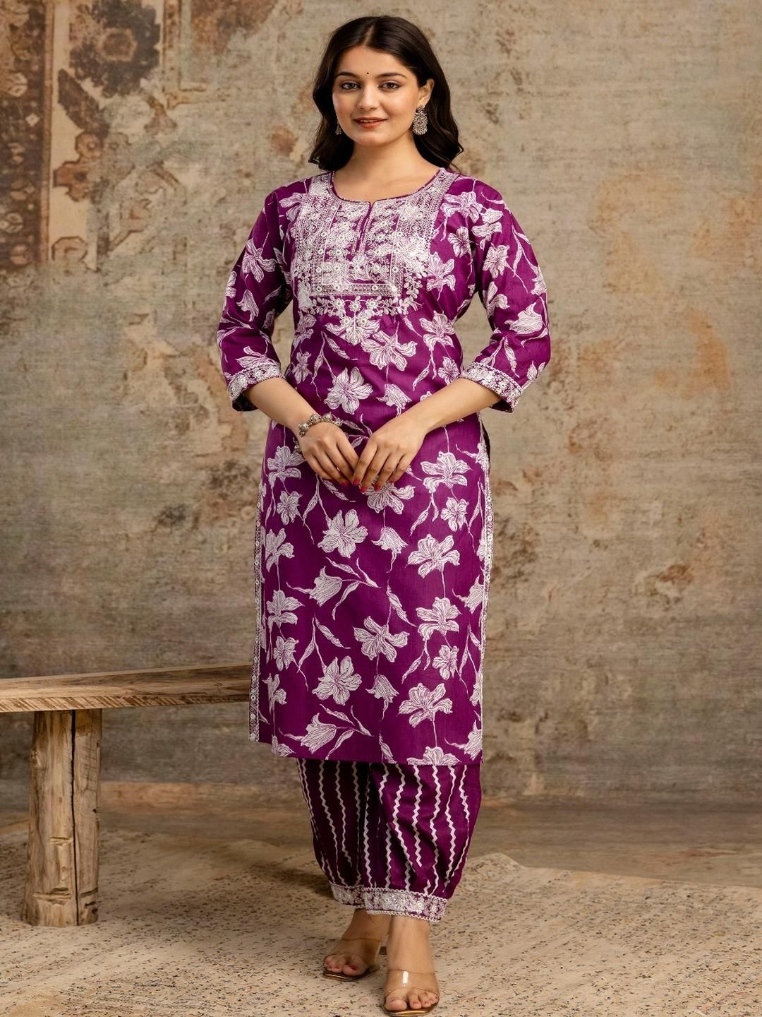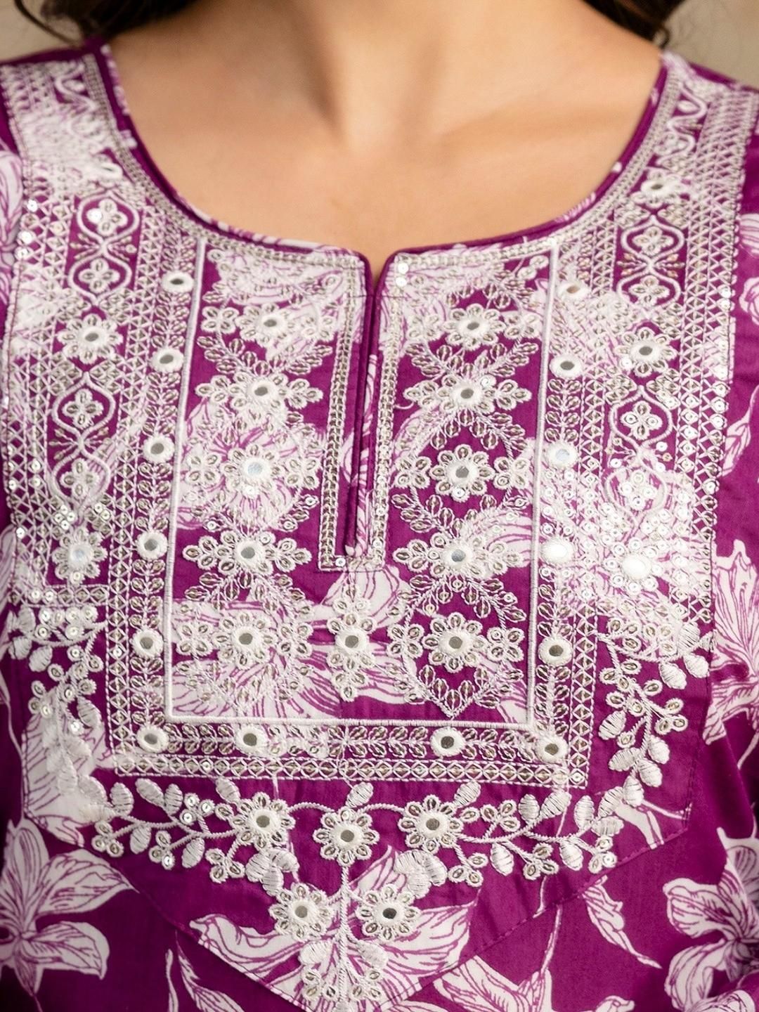 shoecom Women Embroidered Pure Cotton Kurta Sets