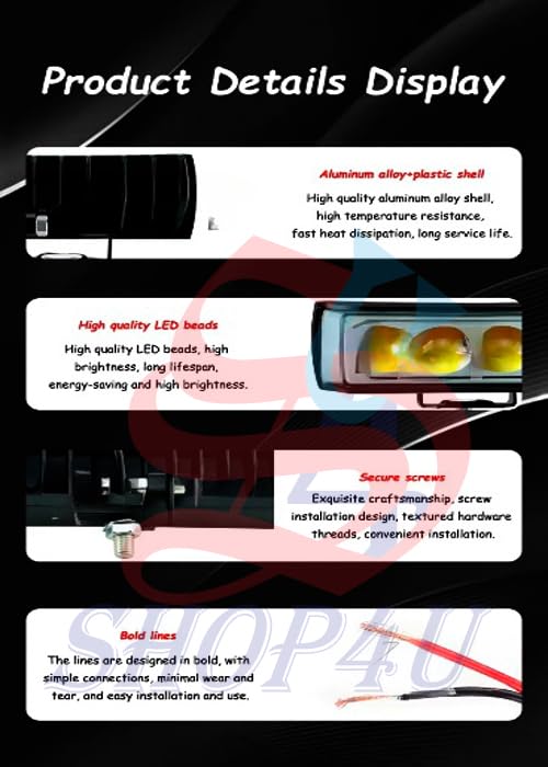 SUPERIOR HEAT DISSIPATION: Constructed with a large-area heat-dissipation aluminum material, these lights dissipate heat more effectively, helping to extend the product?s lifespan for long-lasting performance. WIDE INSTALLATION RANGE: Designed for use on vehicles with DC12-85V power, including motorcycles, cars, ATVs, and off-road vehicles, offering versatile installation options for many applications. IP68 WATERPROOF RATING: With premium seal lenses and high-quality gaskets, these off-road LED lights are built to withstand heavy rain, fog, and moisture, ensuring reliable performance by keeping water droplets out of the lens. UNIVERSAL COMPATIBILITY: Perfect for a wide range of vehicles, including cars, ATVs, SUVs, UTEs, motorcycles, bicycles, trucks, boats, off-road vehicles, trailers, excavators, and heavy equipment like tractors and 4x4s. EASY INSTALLATION: Featuring multi-angle adjustable mounting brackets, these lights can be positioned for the ideal lighting angle, whether you need a downward angle for nearby visibility or an upward angle for extended reach.