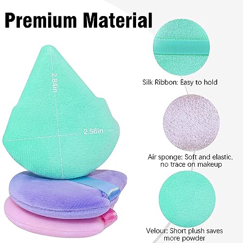 ShopClub Powder Puff 6PCs Soft Triangle Makeup Puffs, Soft & Reusable Velvet Makeup Sponge Puffs with Strap, Latex-Free Makeup Puffs for Loose & Cosmetic Foundation , Wet Dry Use Face Make Up Puffs Va