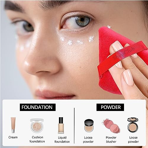 ShopClub Powder Puff 6PCs Soft Triangle Makeup Puffs, Soft & Reusable Velvet Makeup Sponge Puffs with Strap, Latex-Free Makeup Puffs for Loose & Cosmetic Foundation , Wet Dry Use Face Make Up Puffs Valentine's Day Gift