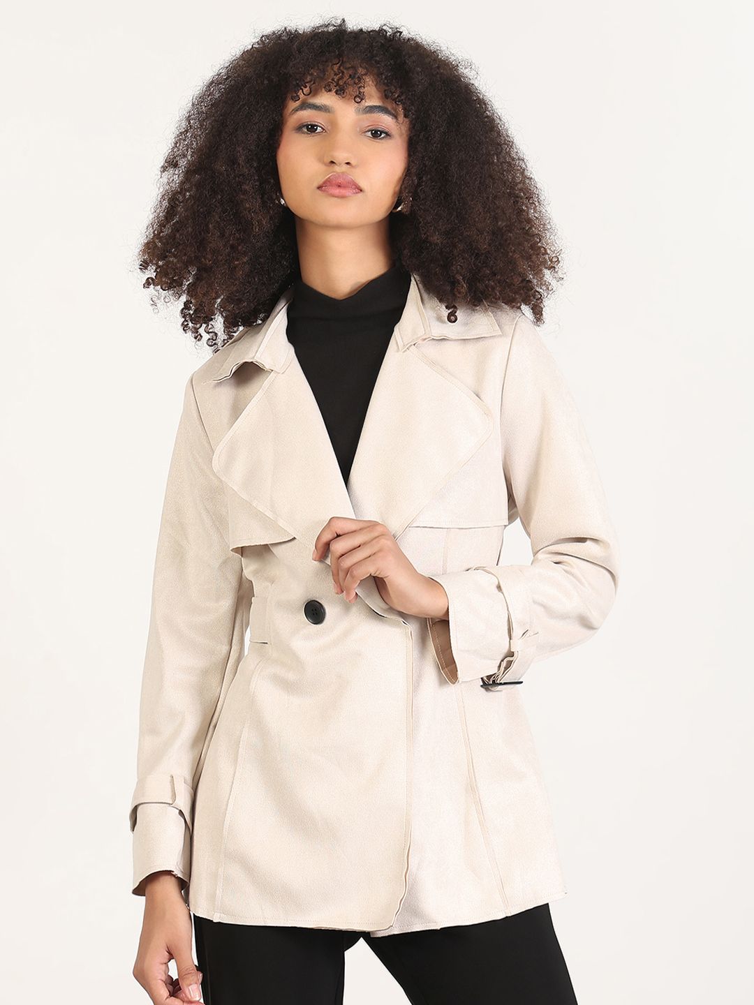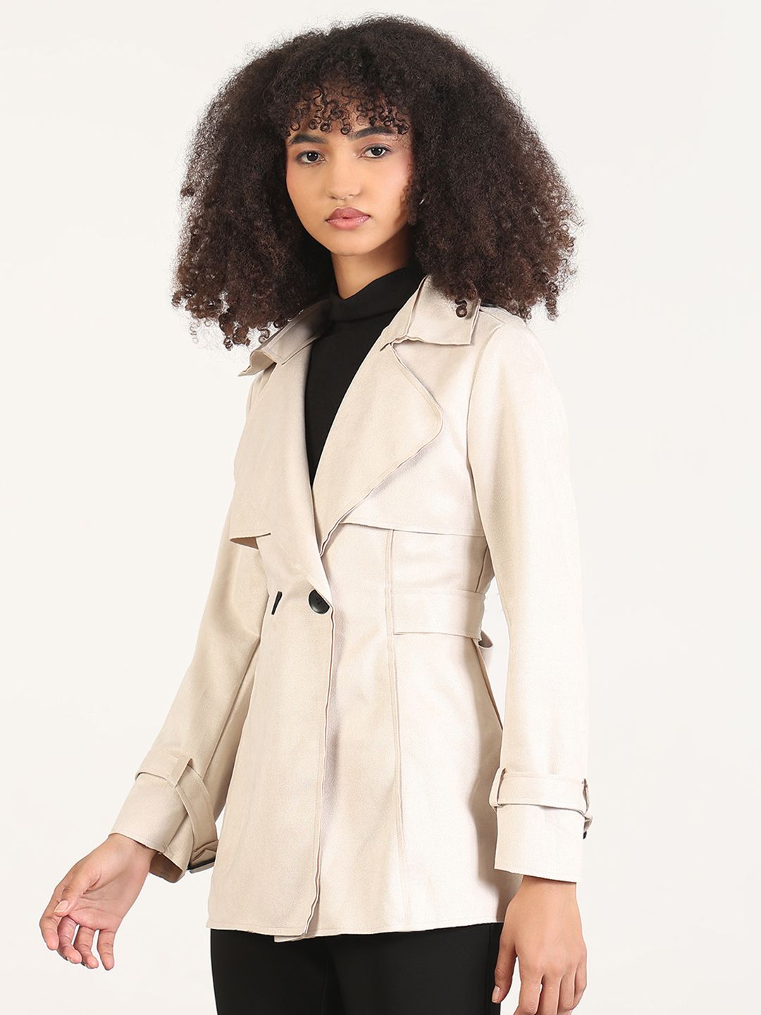 SHOWOFF Women Solid Trench Coat With WristBelt