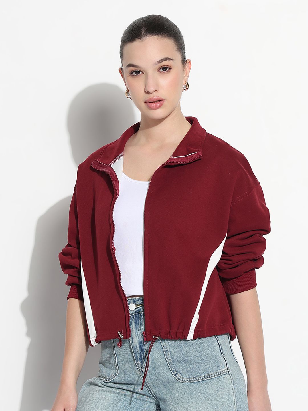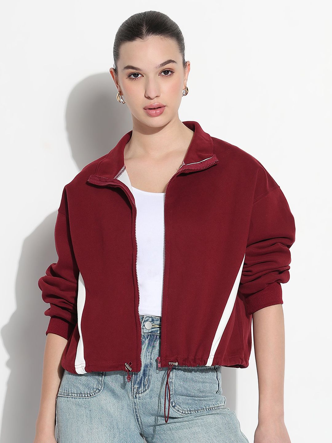 SHOWOFF Women Spread Collar Colourblocked Casual Sporty Jacket