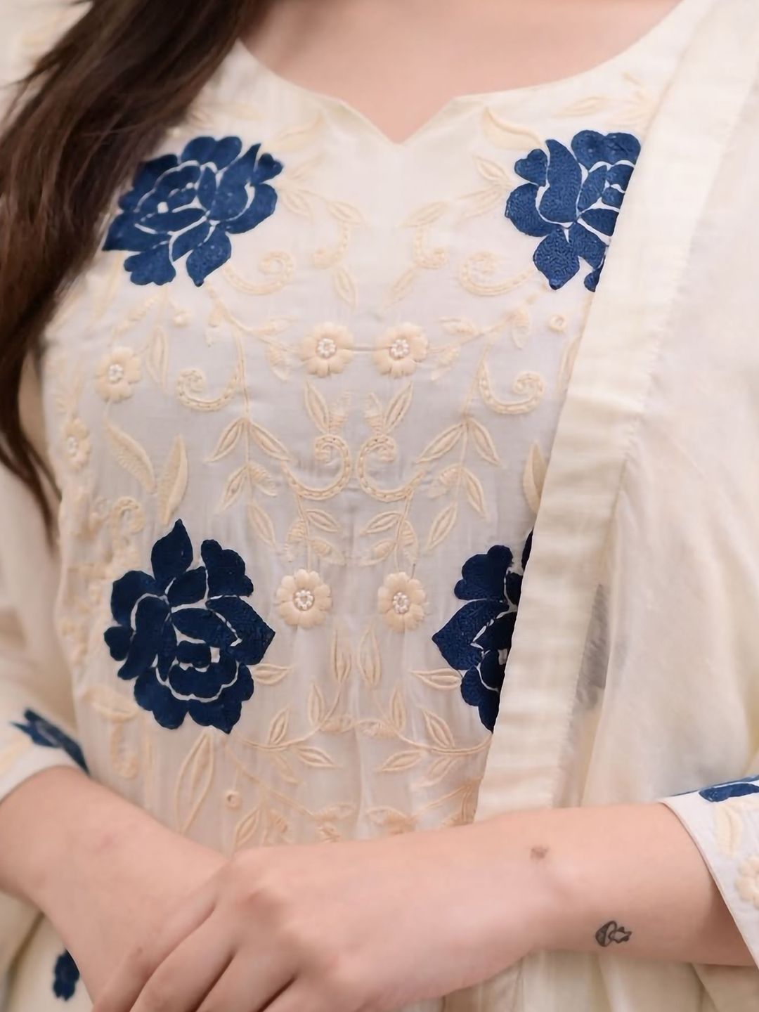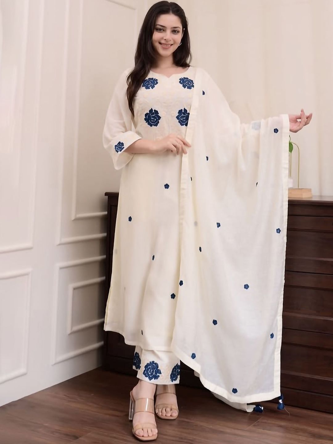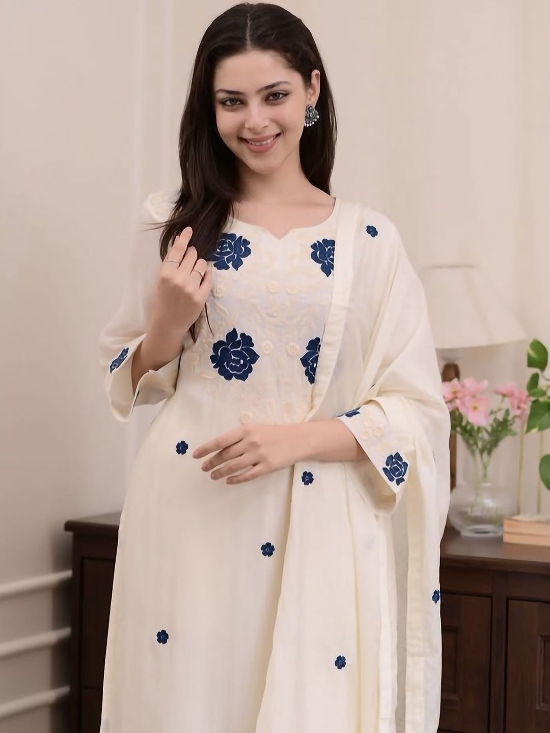 SHREE LAXMINARAYAN EXPORT Floral Embroidered Thread Work Kurta With Trousers & Dupatta