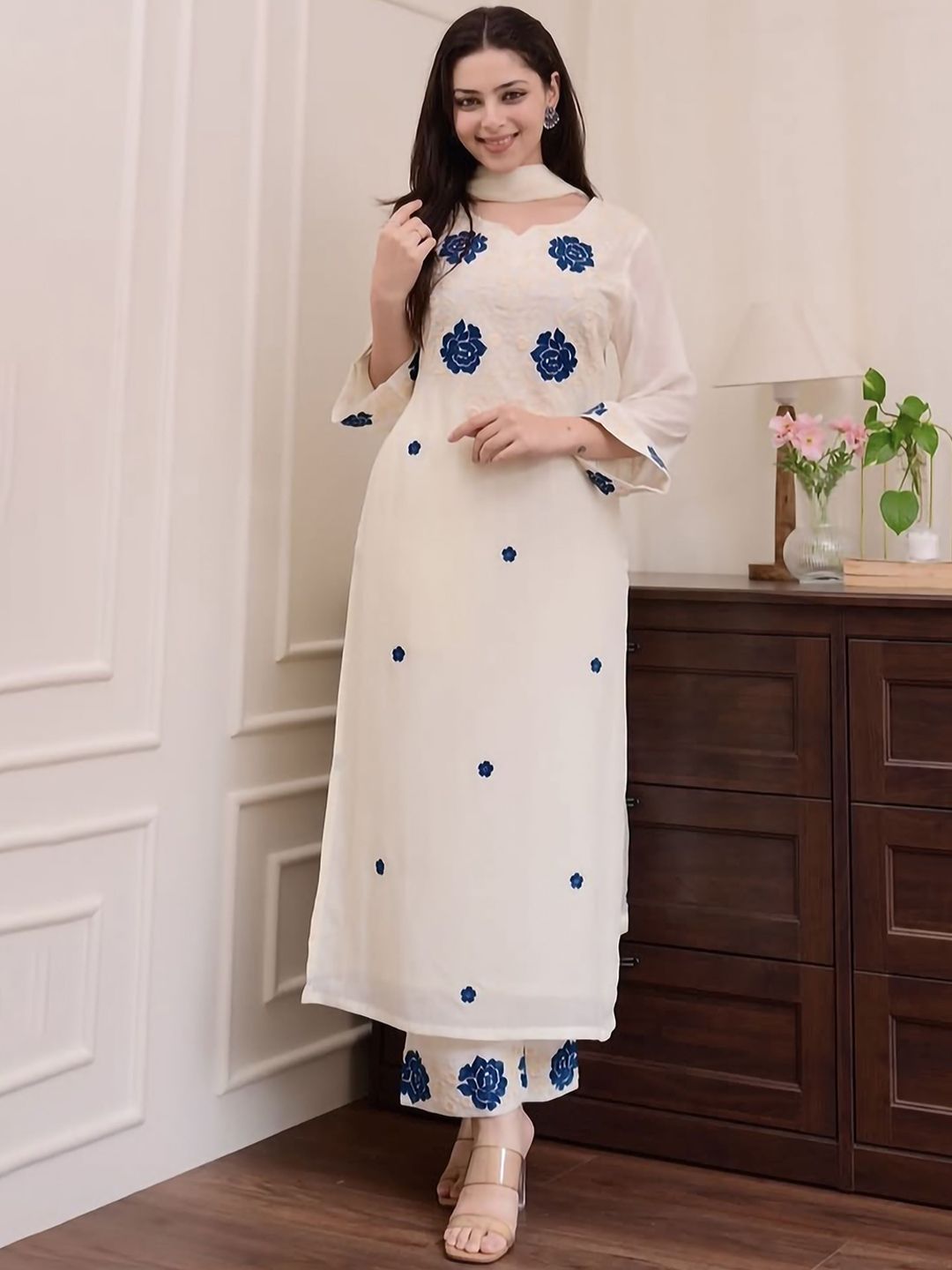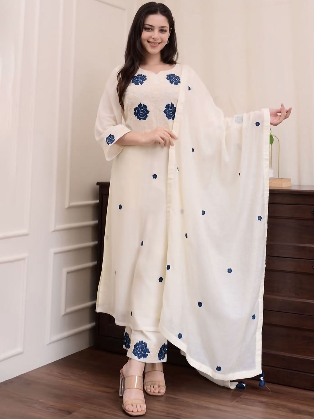Buy this stylish SHREE LAXMINARAYAN EXPORT Women Woven Design Embroidered Kurta with Trousers & Dupatta at Marincart Nepal. This product offers great quality and value. Perfect for those looking for the latest trends in fashion. Get yours now at unbeatable prices.