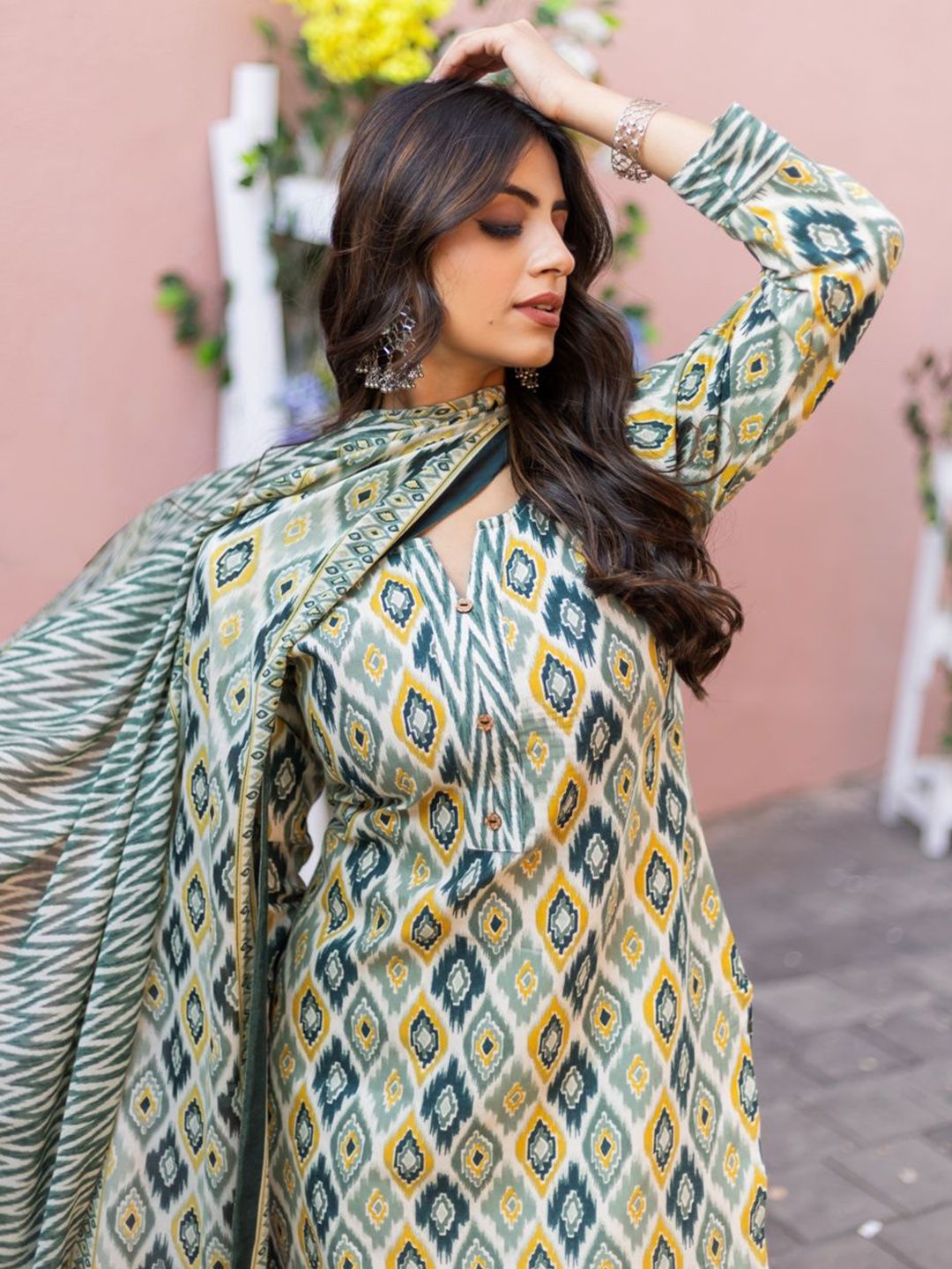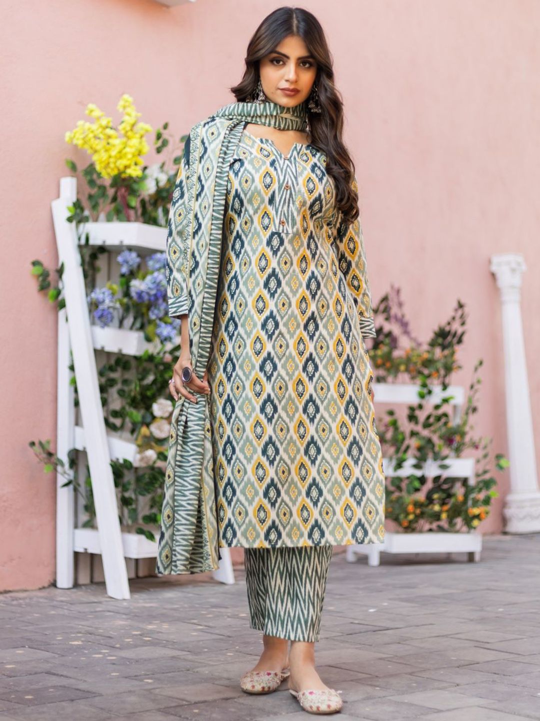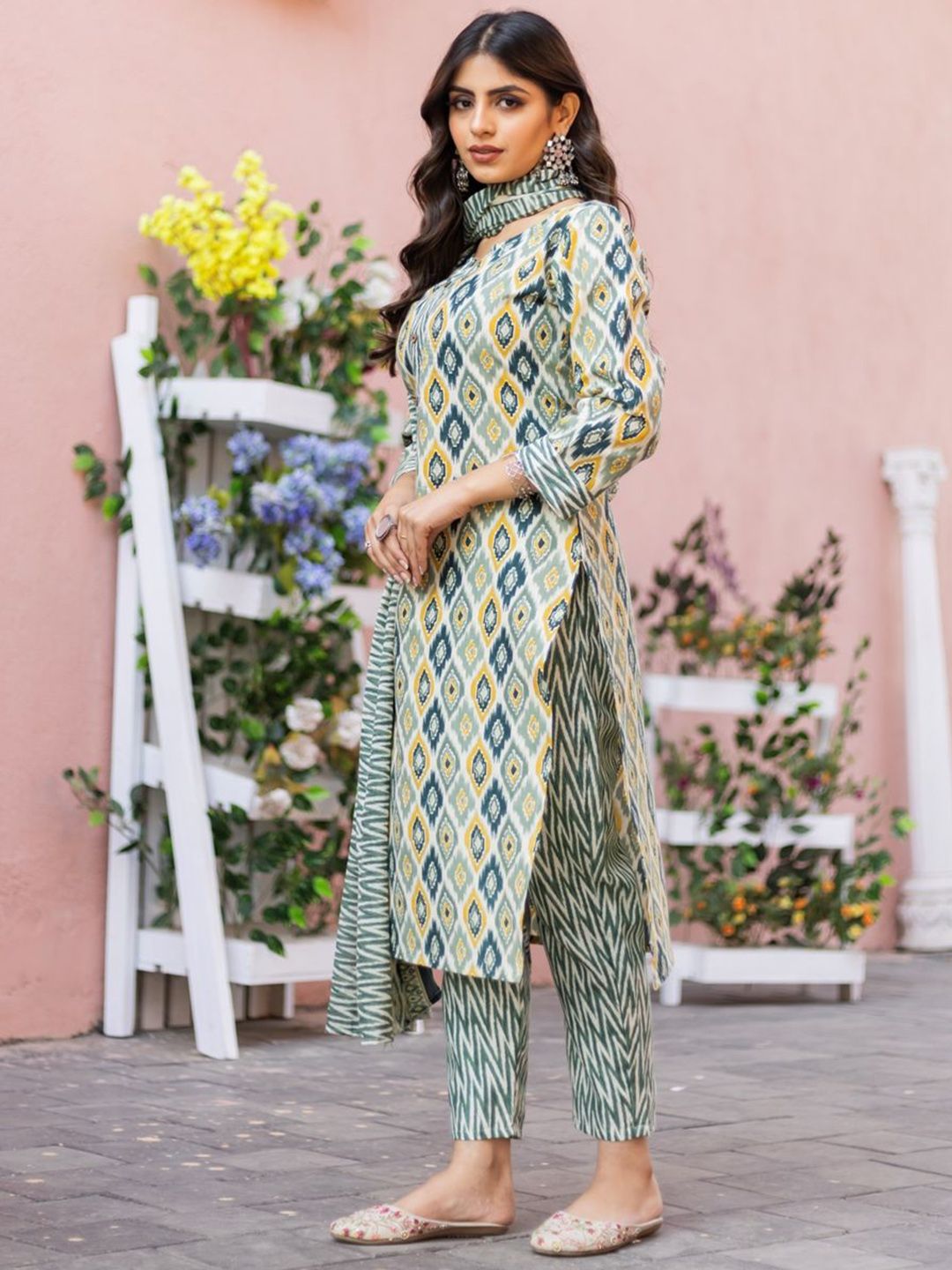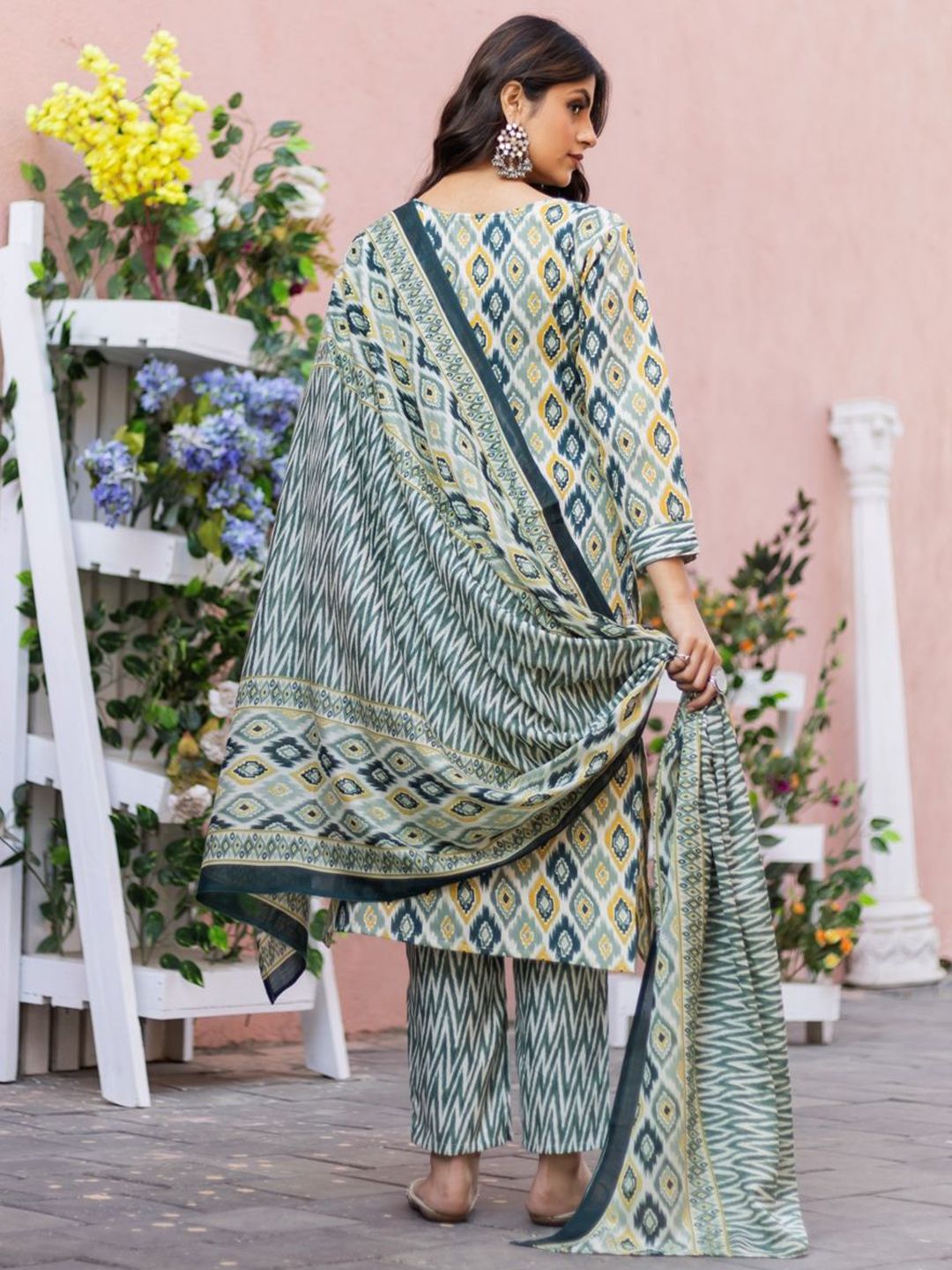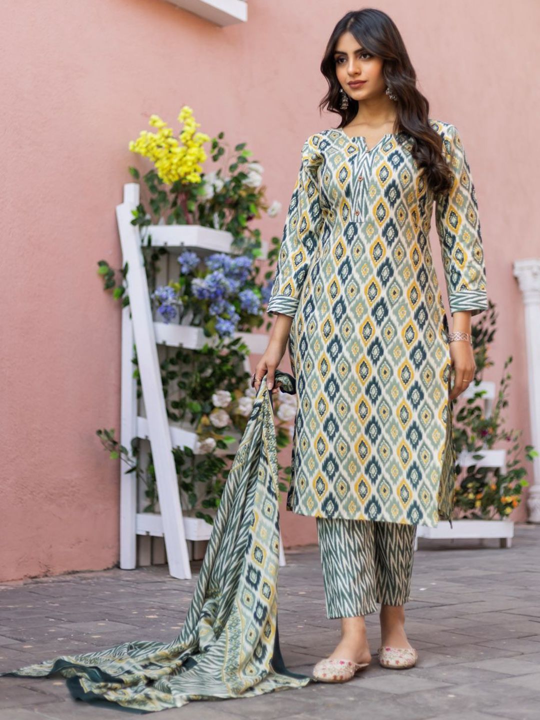 Shriyangan Geometric Printed Pure Cotton Kurta With Trousers & Dupatta