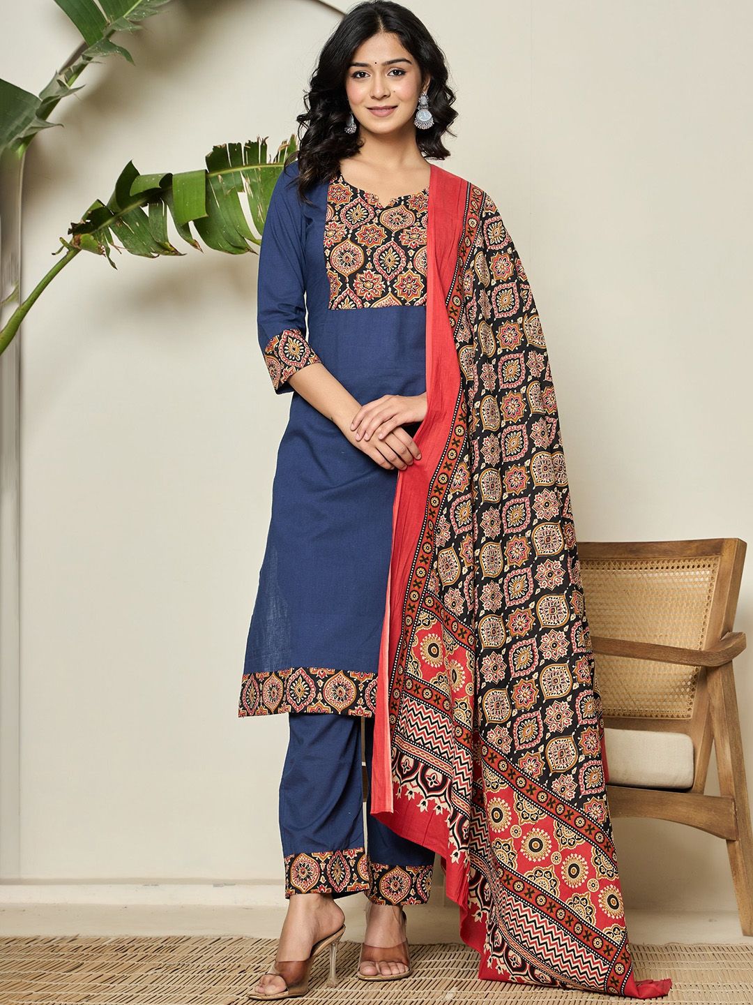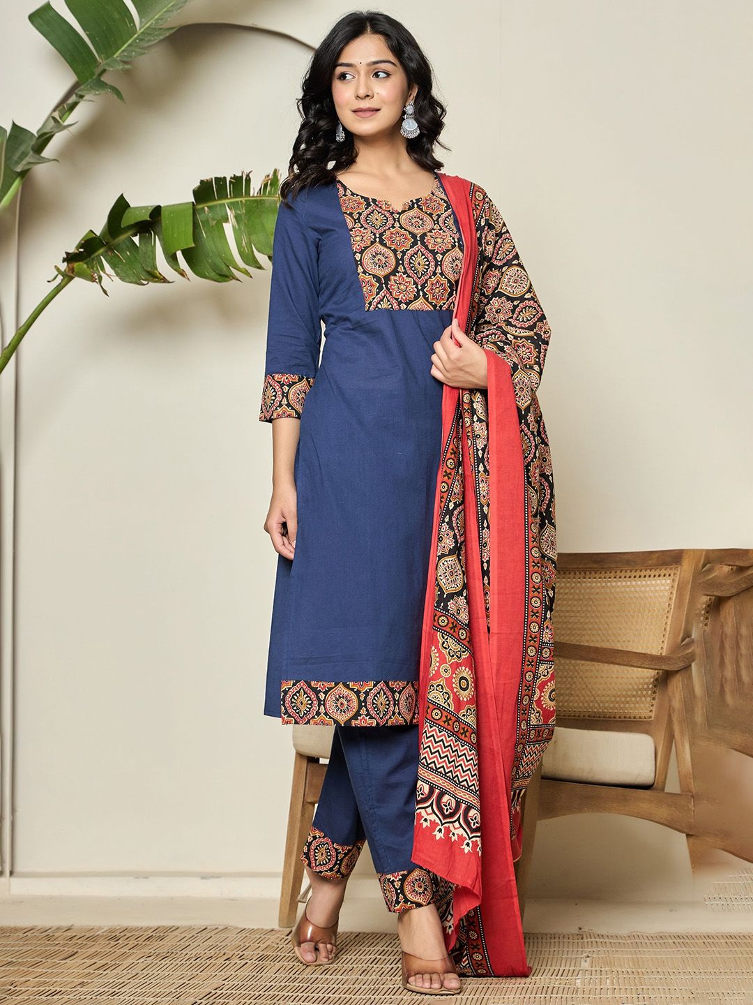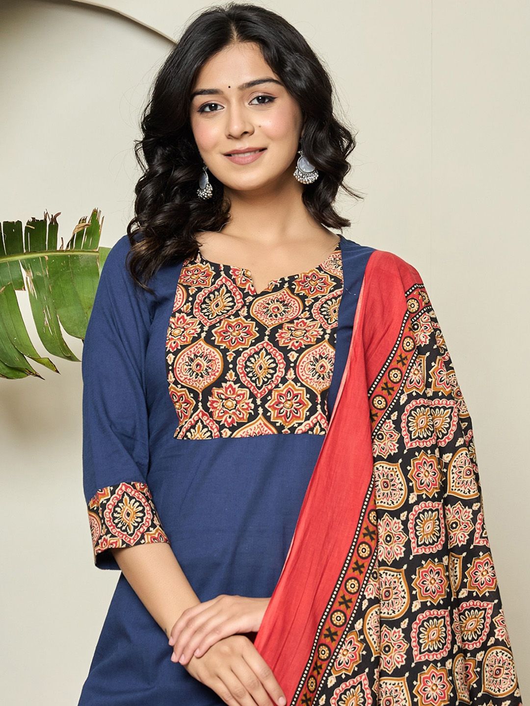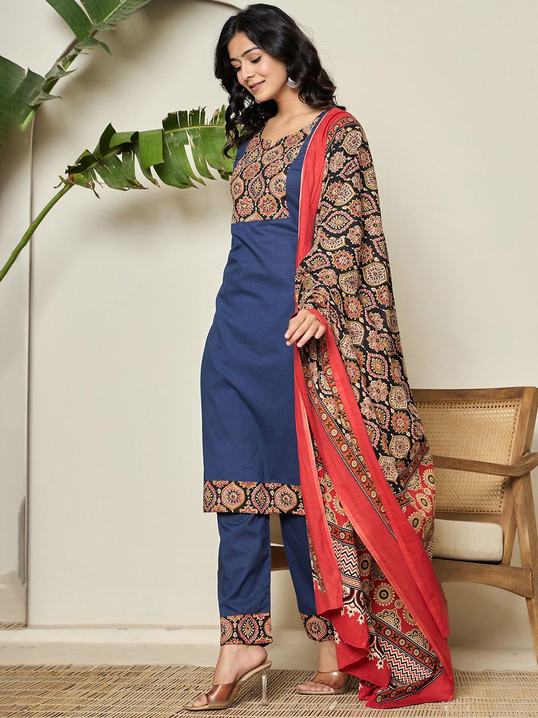 Shriza Women Ethnic Motifs Printed Cotton Kurta with Trousers & Dupatta