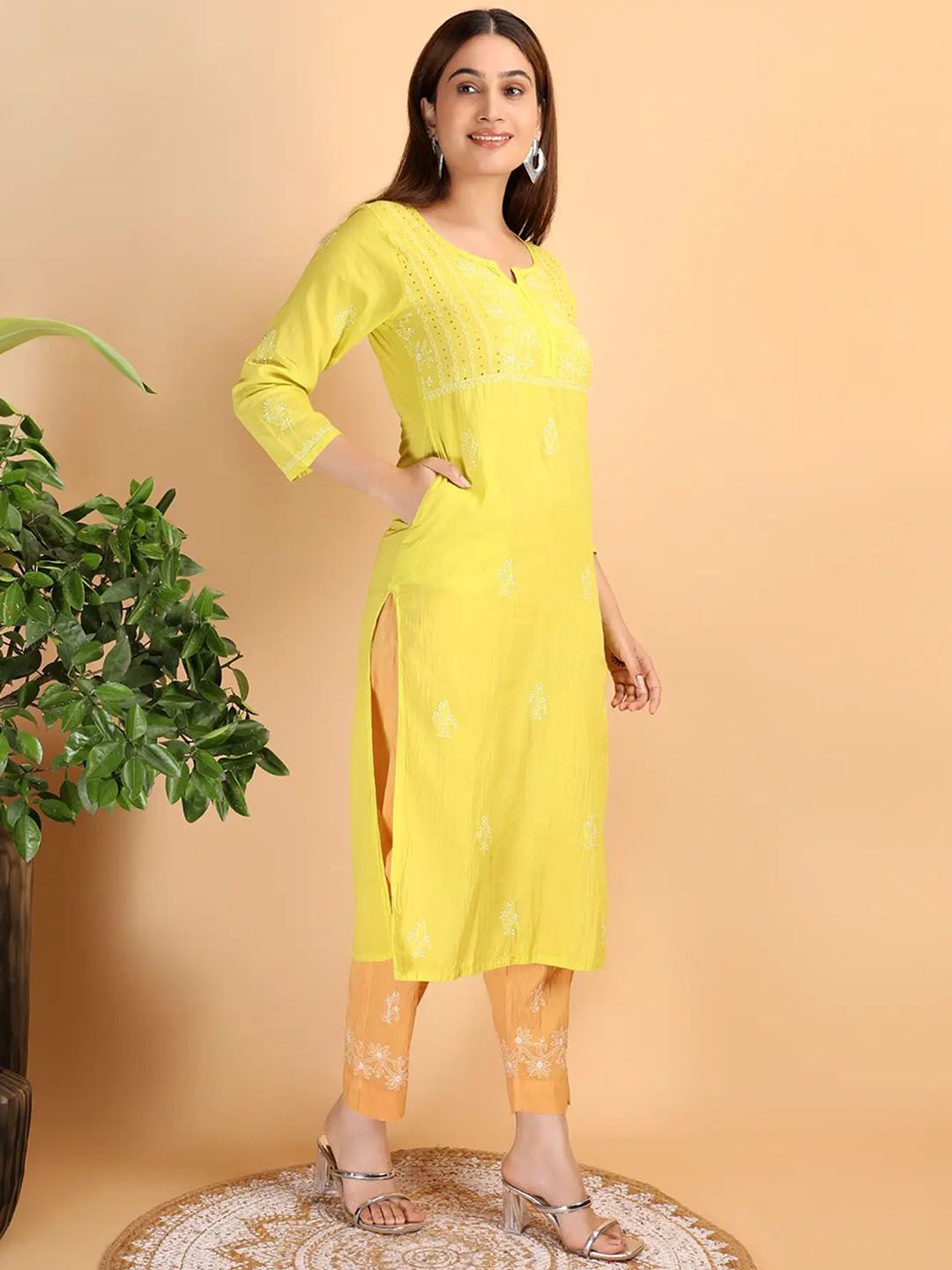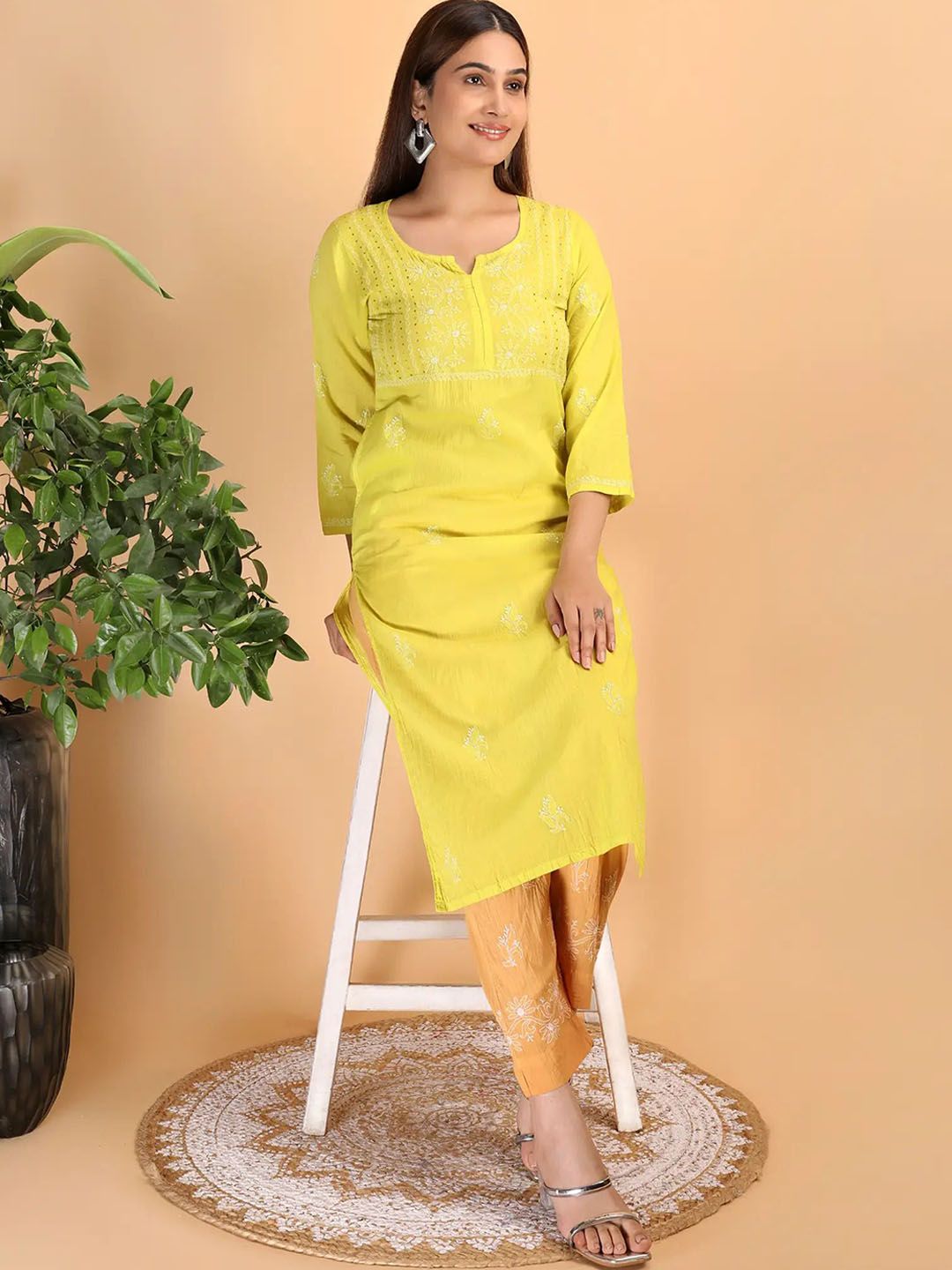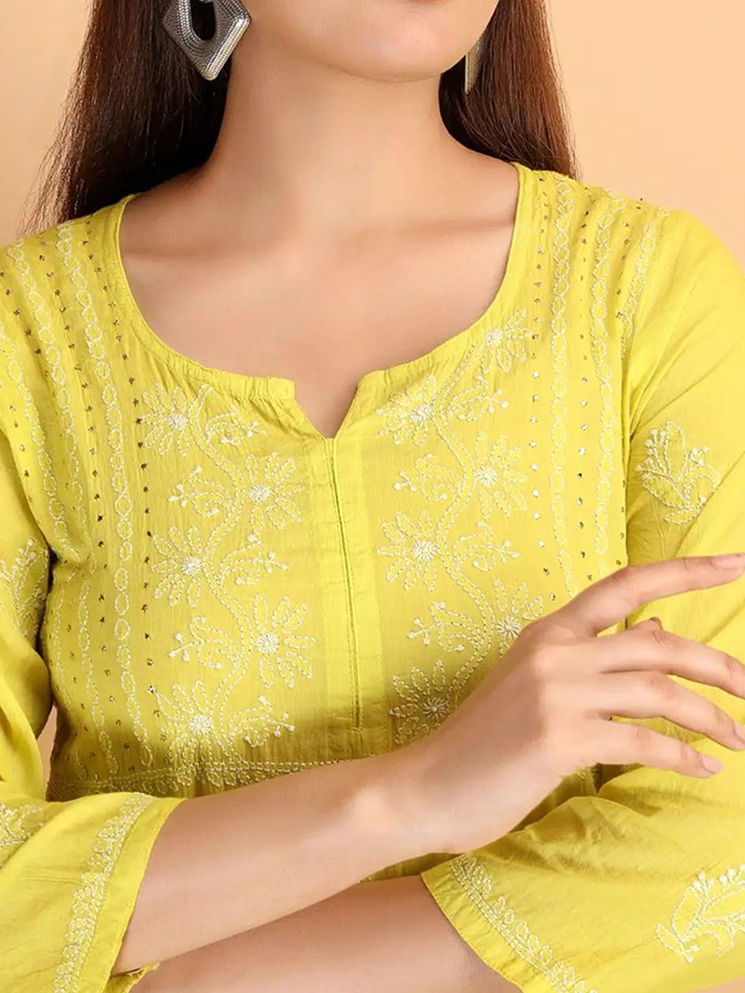 Buy this stylish SHWET Women Floral Embroidered Regular Sequinned Pure Cotton Kurta with Trousers at Marincart Nepal. This product offers great quality and value. Perfect for those looking for the latest trends in fashion. Get yours now at unbeatable prices.