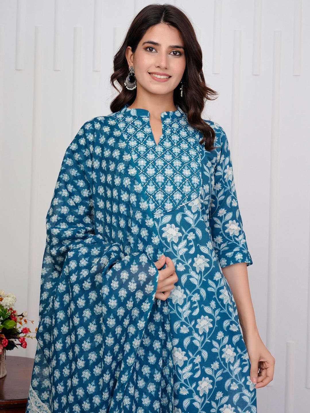 Buy this stylish SIGNORIA Ethnic Motifs Printed Thread Work Pure Cotton Kurta With Trousers & Dupatta at Marincart Nepal. This product offers great quality and value. Perfect for those looking for the latest trends in fashion. Get yours now at unbeatable prices.