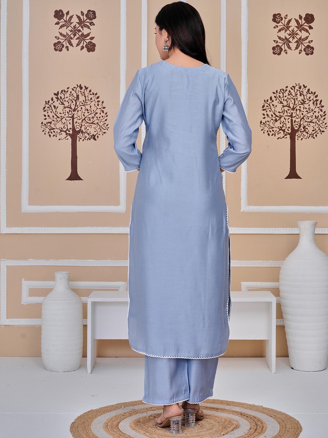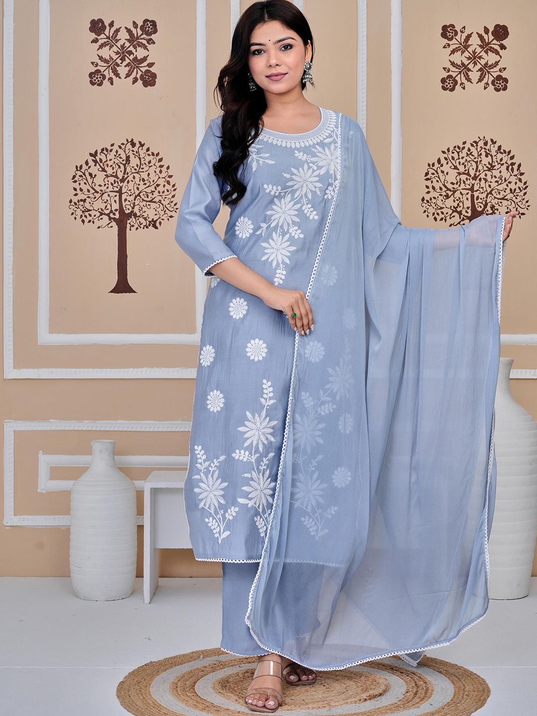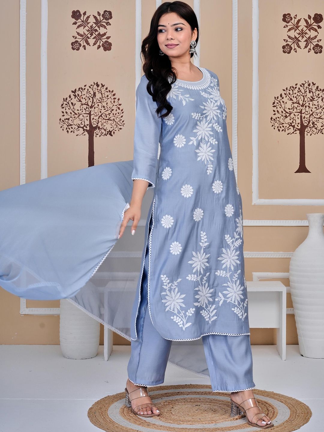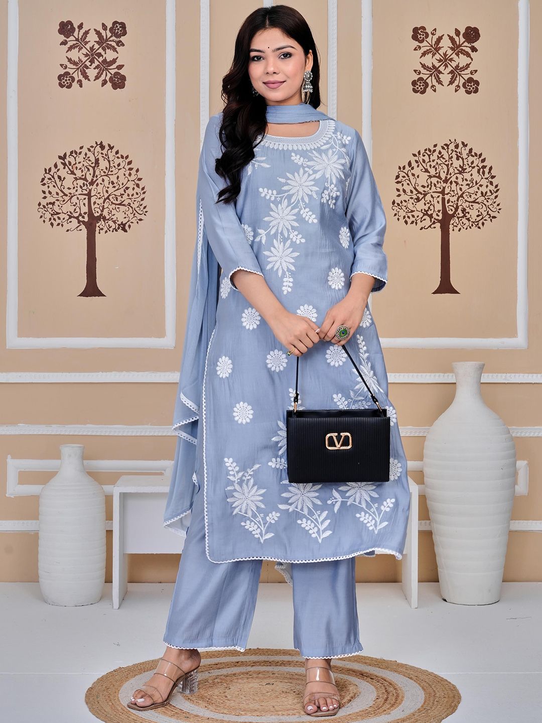 SIGNORIA Floral Embroidered Thread Work Pure Cotton Kurta with Trousers & With Dupatta