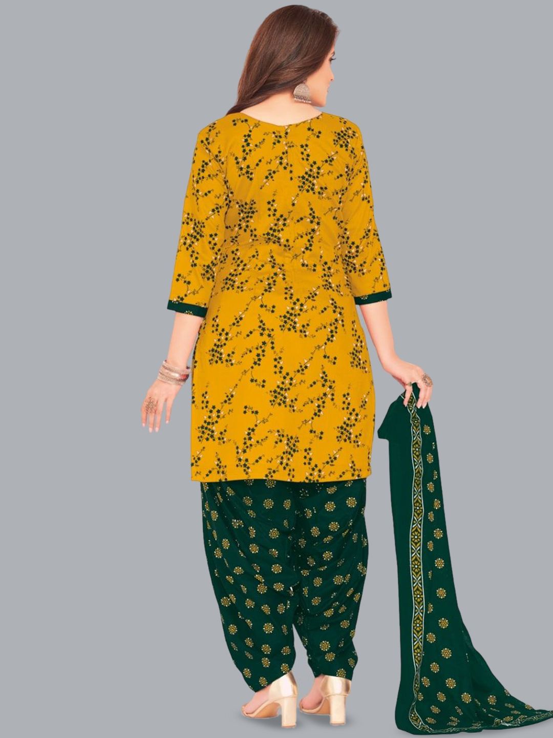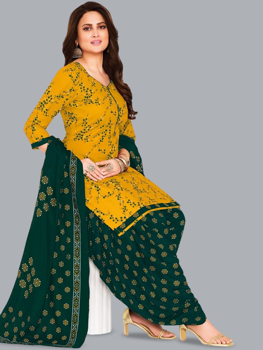 Simmu Floral Printed Round Neck Straight Pure Cotton Kurta With Patiala & Dupatta