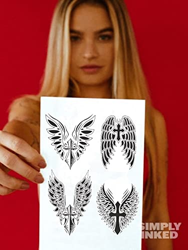 Simply Inked Cross Wings Semi-Permanent Tattoo Bundle Designer Semi-Permanent Tattoo for Girls Boys Men Women waterproof Sticker Size: 5 x 7.5 inch l Blue Black l 2g