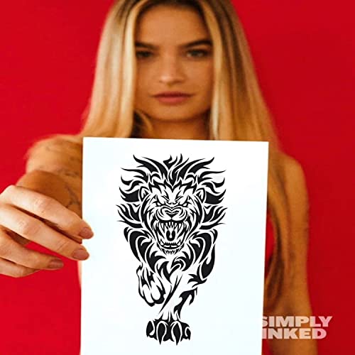 Simply Inked Hunting Lion Semi-Permanent Tattoo Designer Semi-Permanent Tattoo for Girls Boys Men Women waterproof Sticker Size: 4.4 x 7.2 inch l Blue Black l 2g