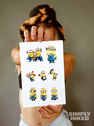 Simply Inked Minions Temporary Tattoo Bundle Designer Tattoo for Girls Boys Men Women waterproof Sticker Size: 2.5 x 4 inch l Multicolor l 2g