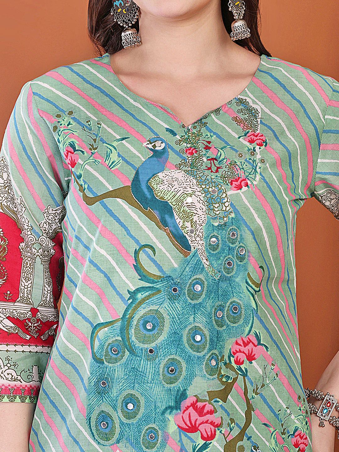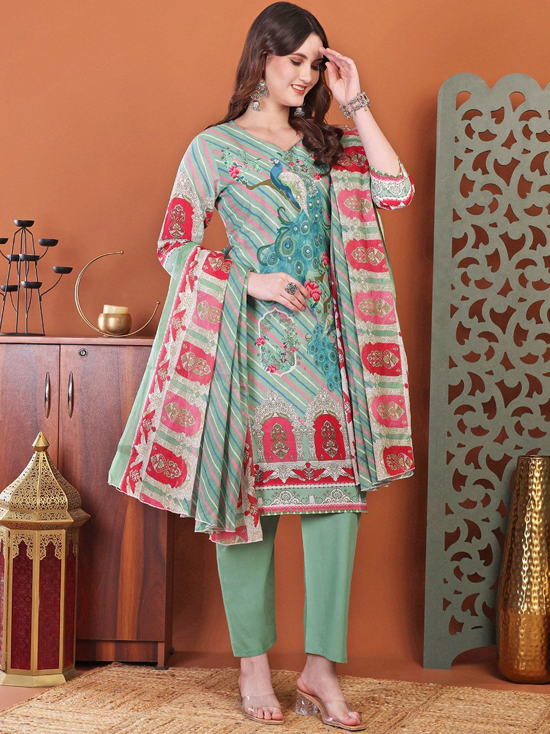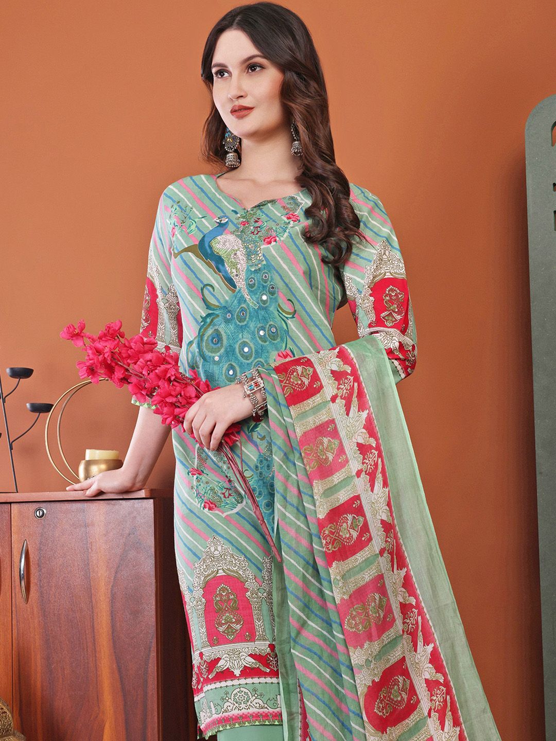 SINGNI Women Ethnic Motifs Printed Cotton Kurta with Trousers & Dupatta