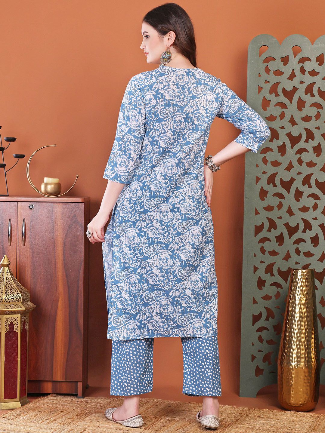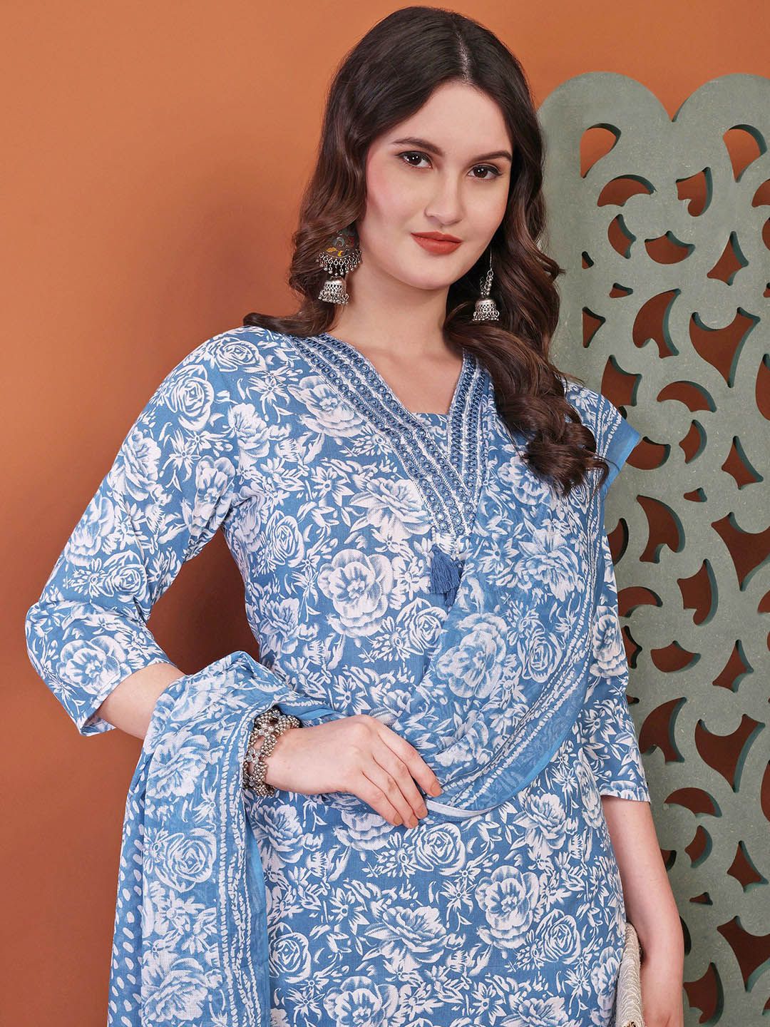 SINGNI Women Floral Printed Cotton Kurta with Trousers & Dupatta
