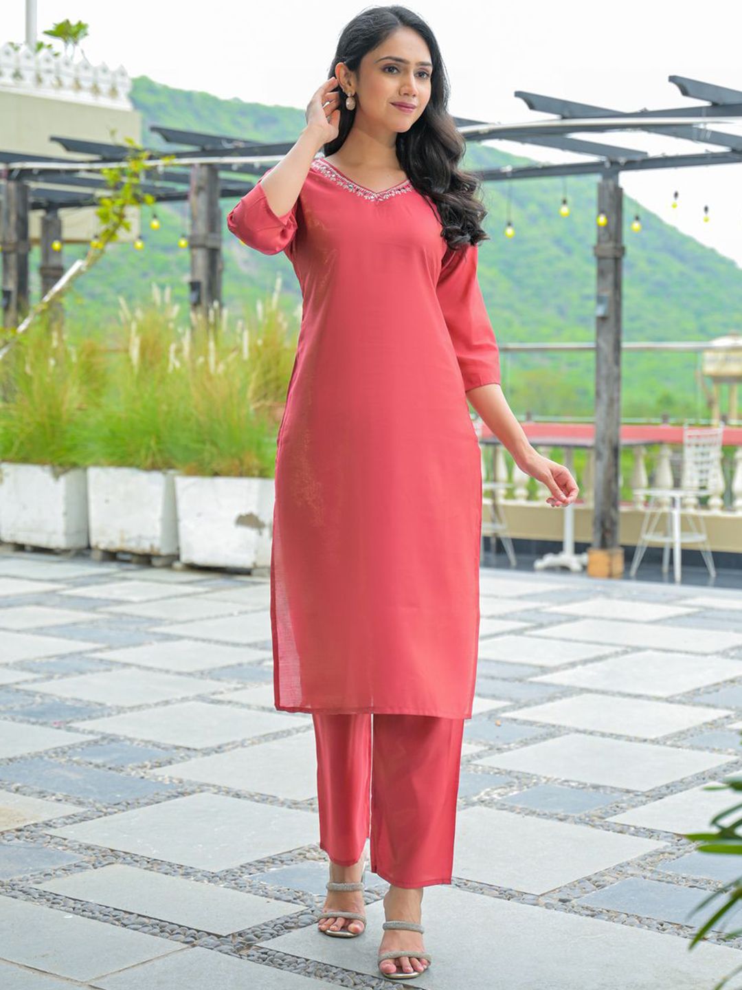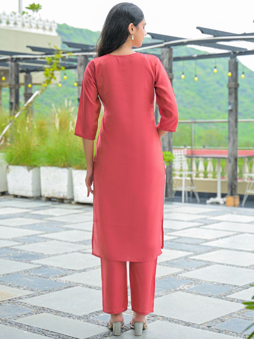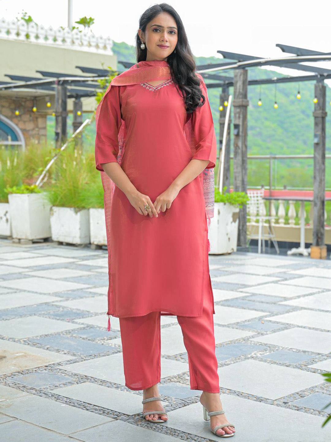 SINGNI Women Floral Yoke Design Silk Kurta with Trousers & Dupatta
