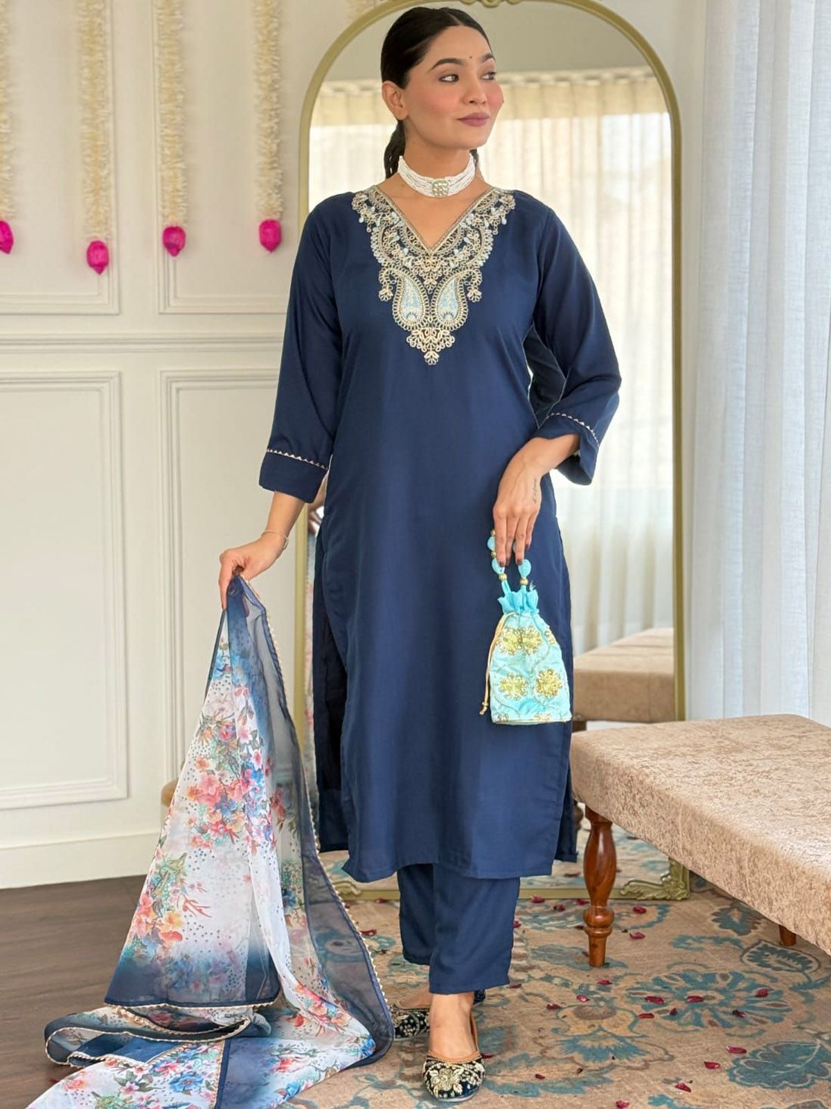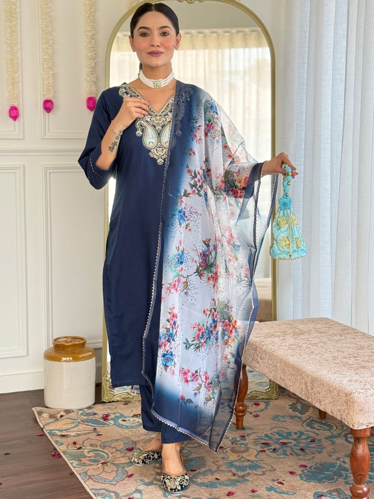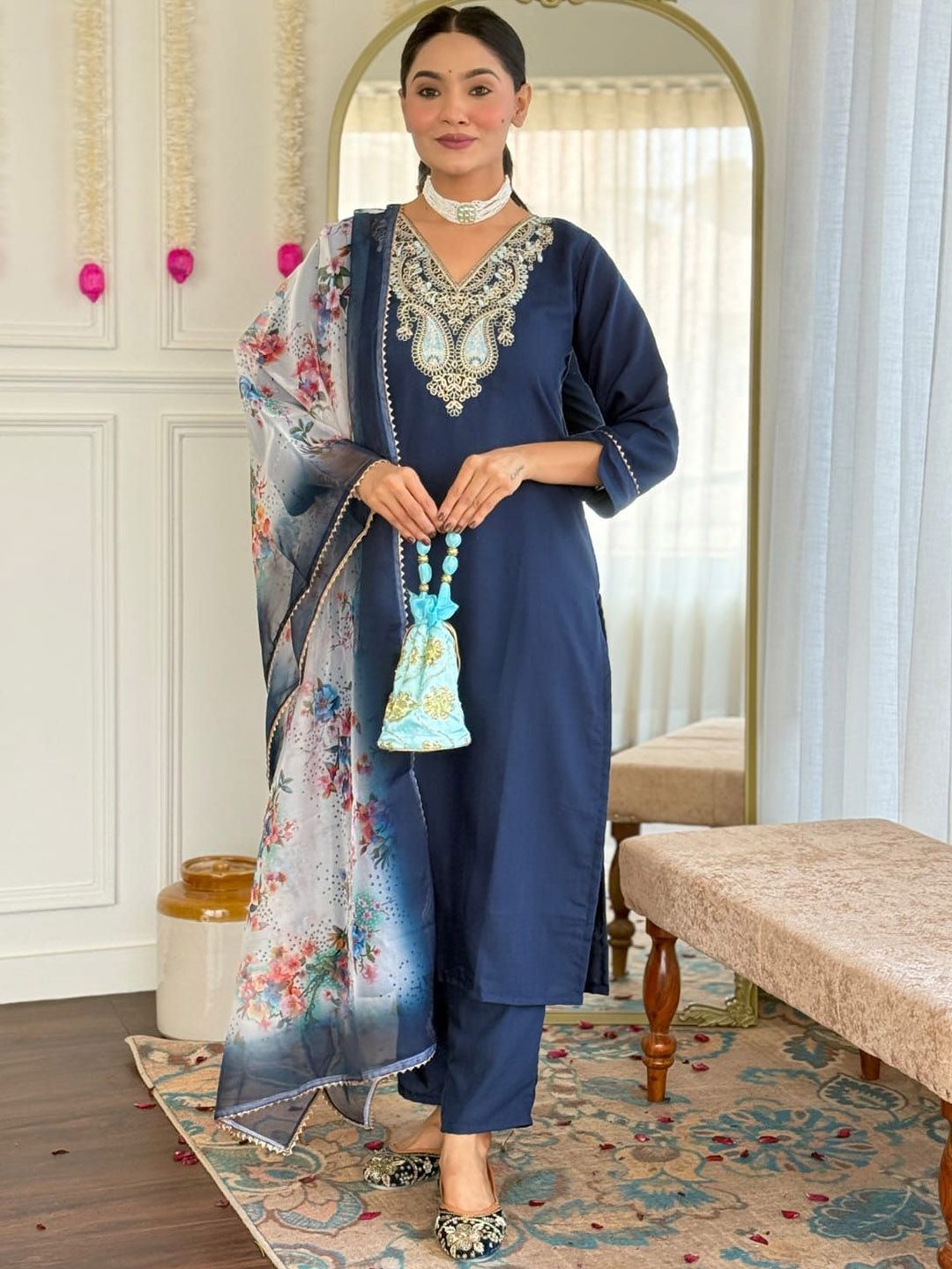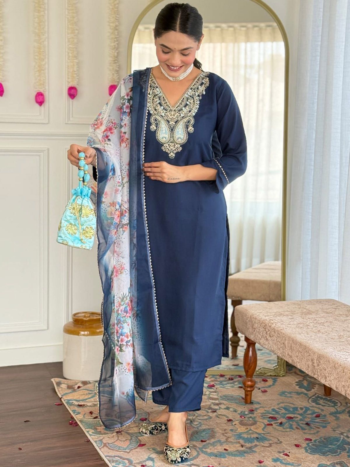 Buy this stylish Siya Fashion Embroidered V-Neck Thread Work Straight Kurta With Trousers And Dupatta at Marincart Nepal. This product offers great quality and value. Perfect for those looking for the latest trends in fashion. Get yours now at unbeatable prices.