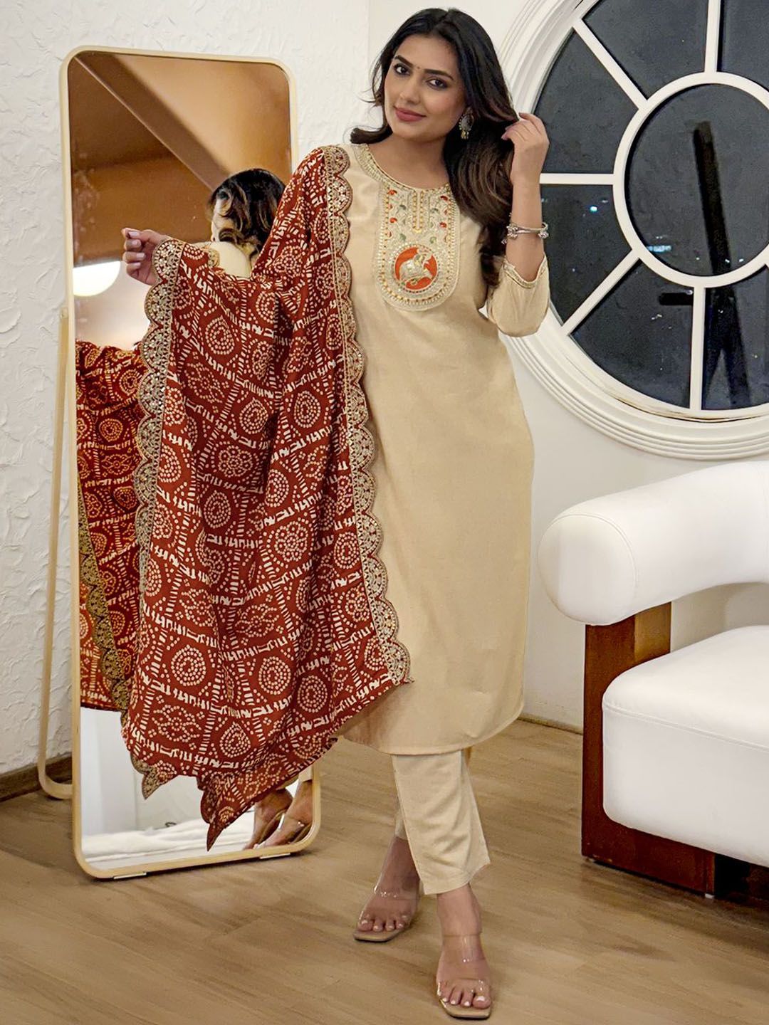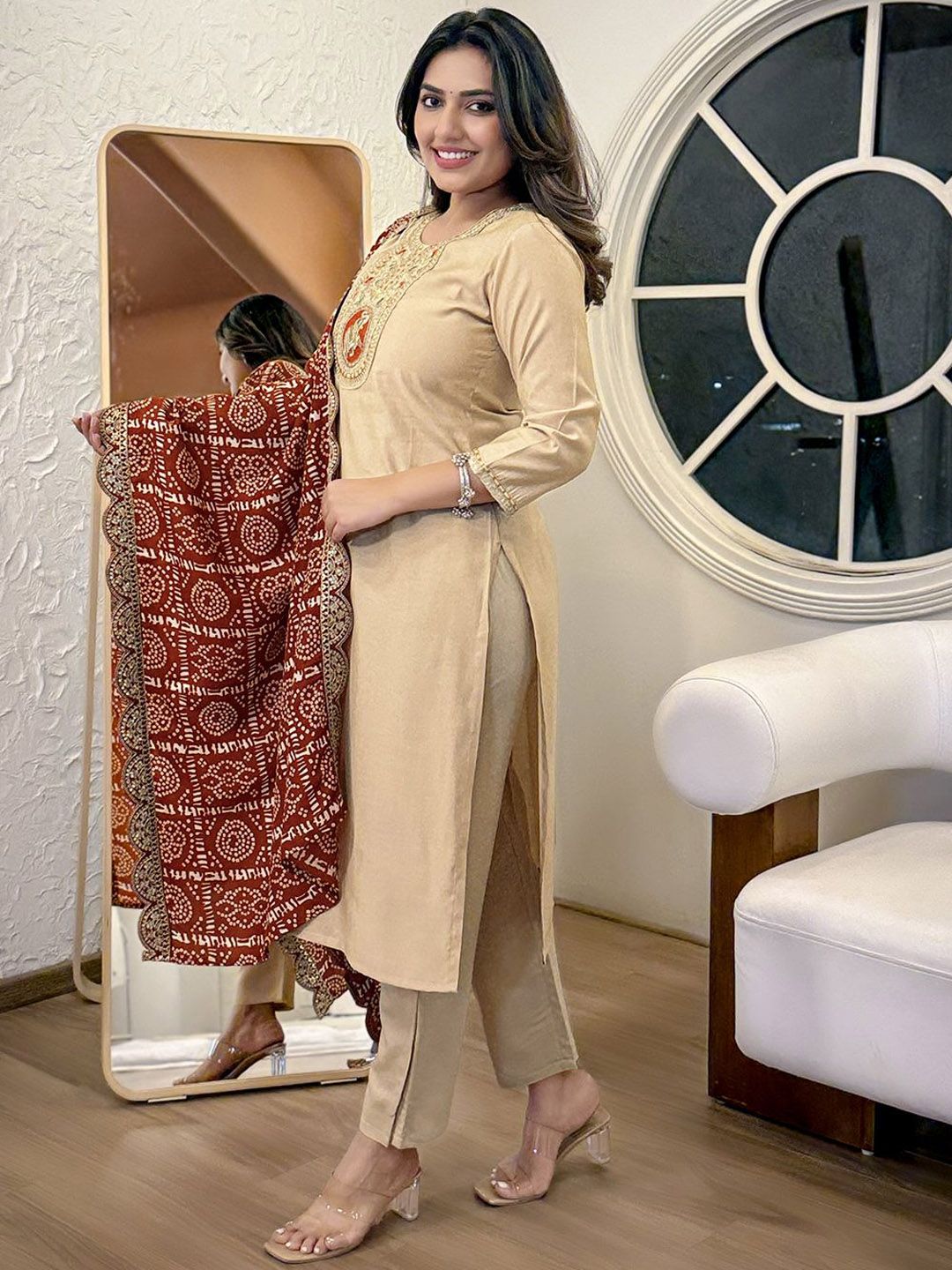 Buy this stylish Siya Fashion Floral Embroidered Sequinned Straight Kurta With Trousers & Dupatta at Marincart Nepal. This product offers great quality and value. Perfect for those looking for the latest trends in fashion. Get yours now at unbeatable prices.