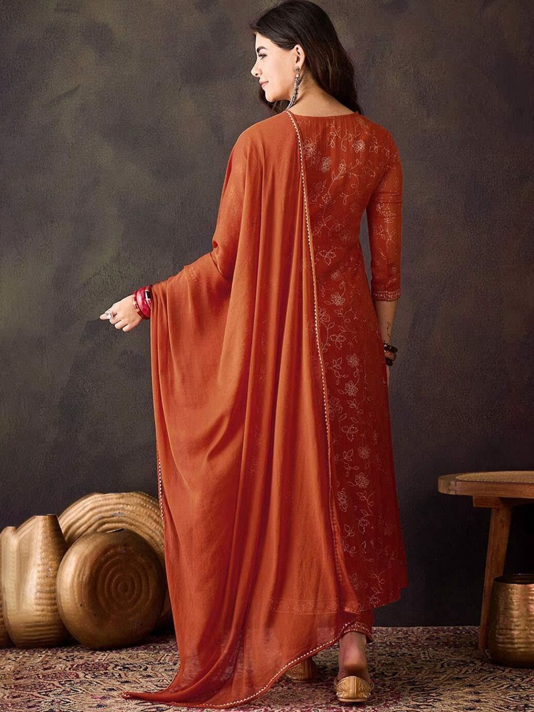 Buy this stylish Siya Fashion Floral Embroidered Thread Work A Line Kurta With Trousers & Dupatta at Marincart Nepal. This product offers great quality and value. Perfect for those looking for the latest trends in fashion. Get yours now at unbeatable prices.