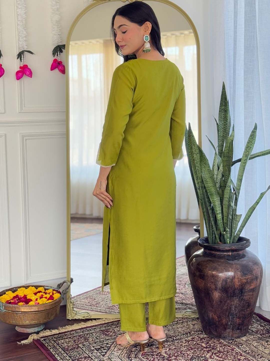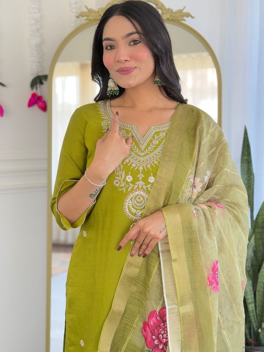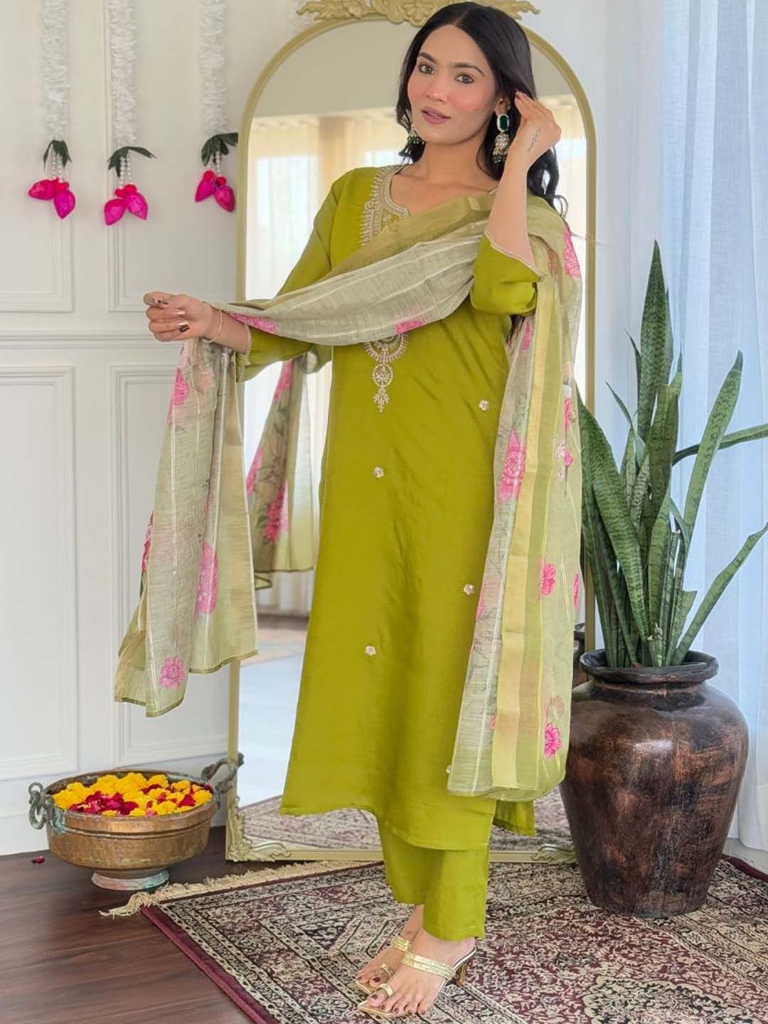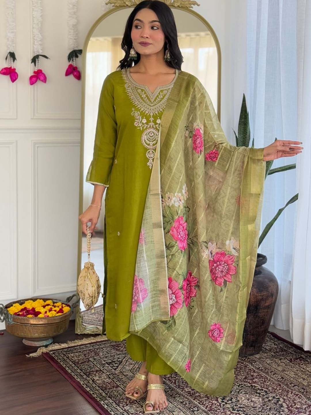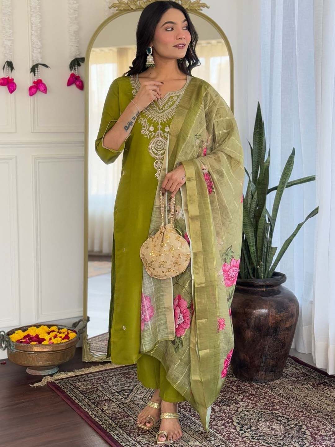 Siya Fashion Floral Embroidered Thread Work Straight Kurta With Trousers & Dupatta