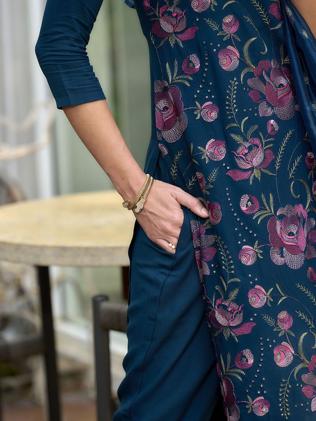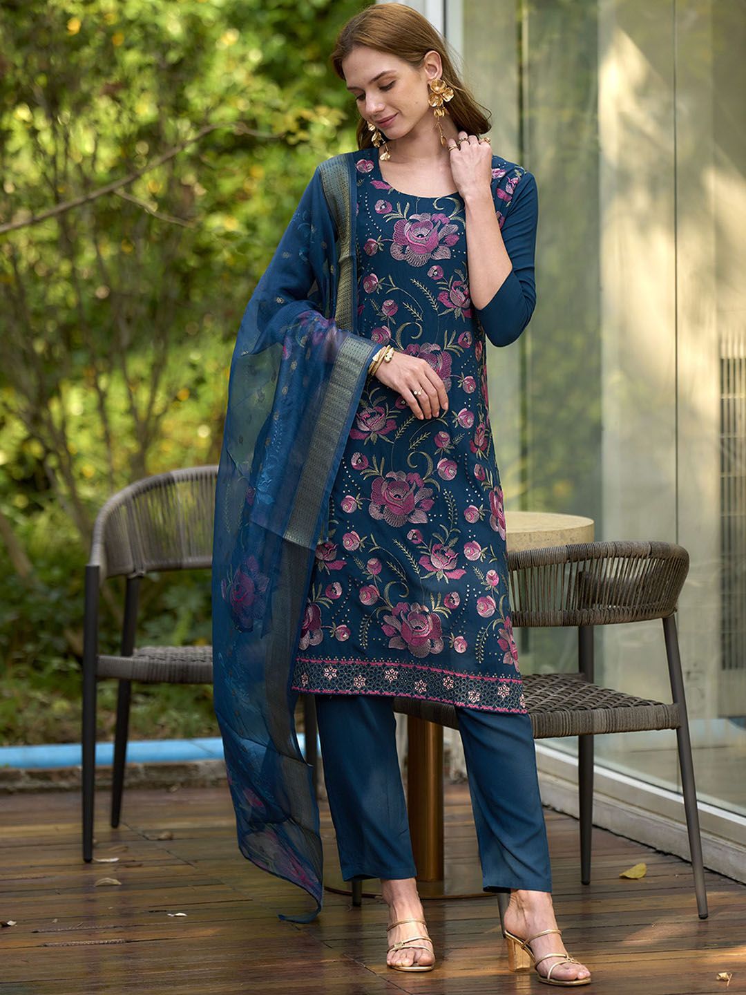 Siya Fashion Floral Embroidered Thread Work Straight Kurta With Trousers And Dupatta