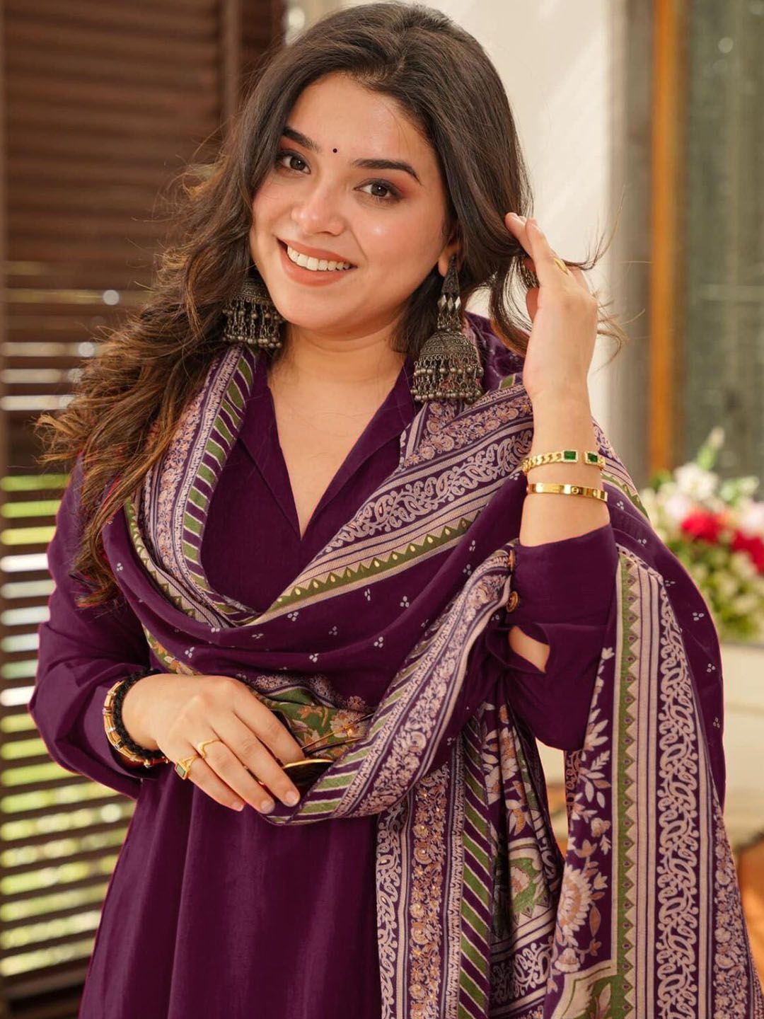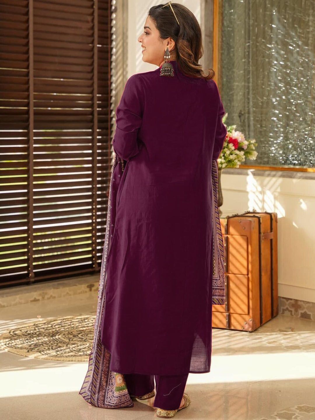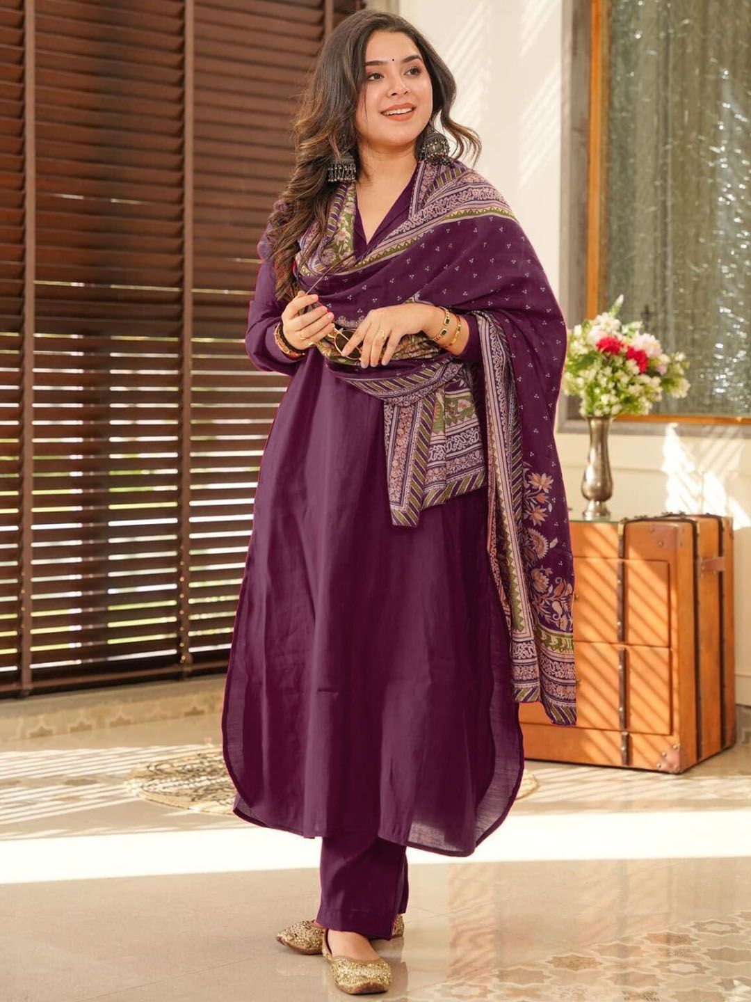 Siya Fashion V-Neck A-Line Kurta With Trousers And Dupatta