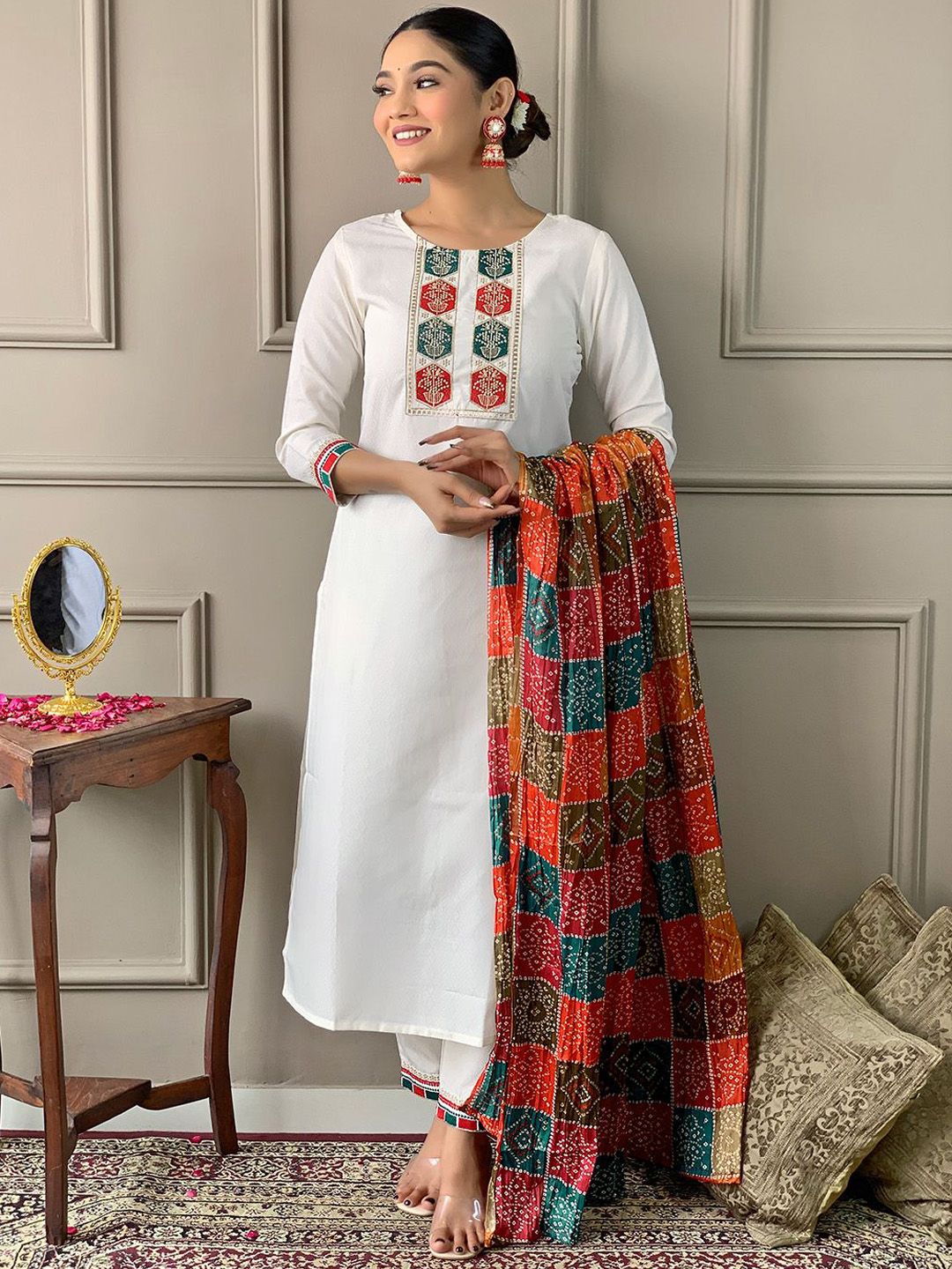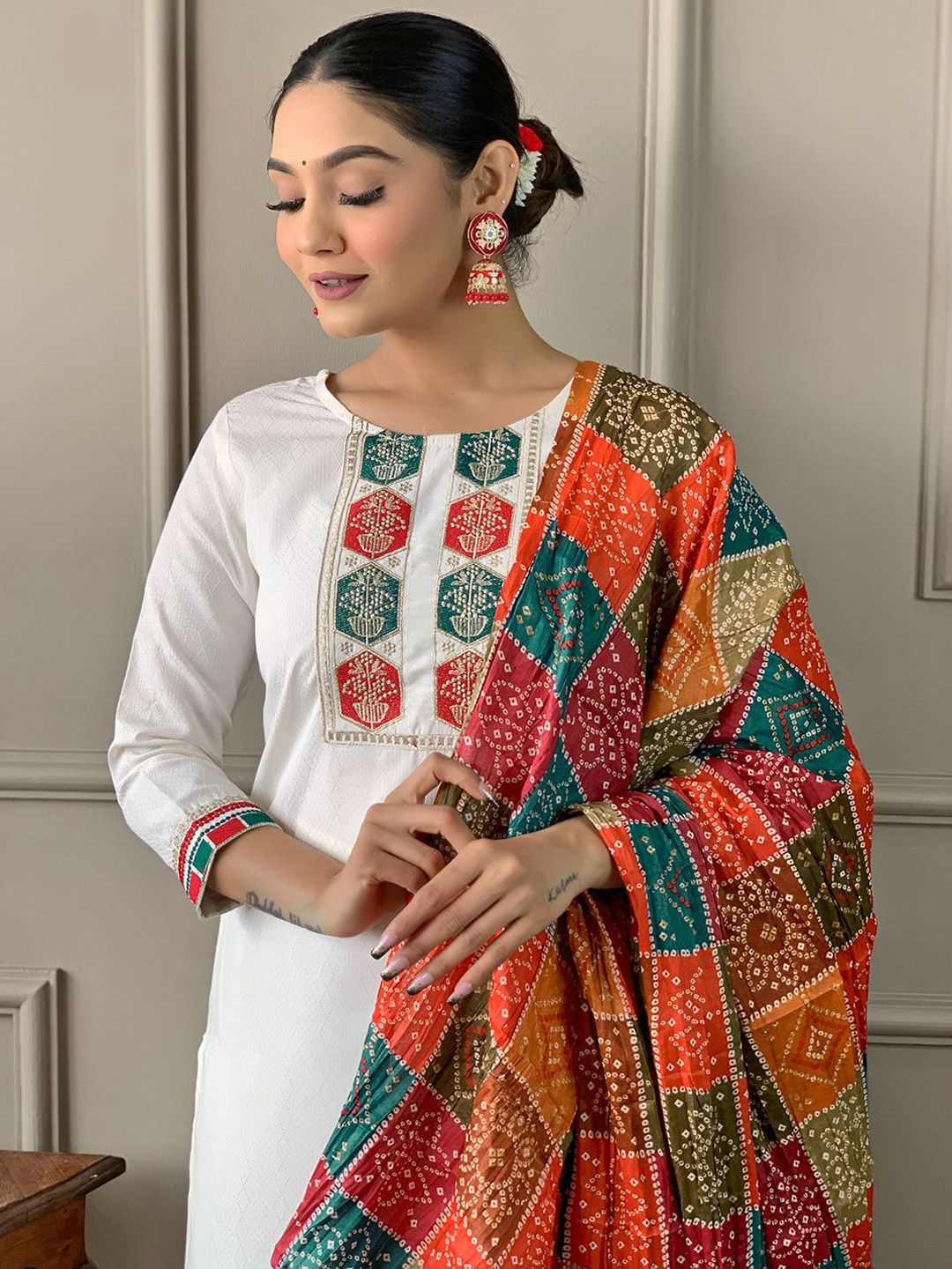 Buy this stylish Siya Fashion Women Embroidered Regular Thread Work Kurta with Trousers & Dupatta at Marincart Nepal. This product offers great quality and value. Perfect for those looking for the latest trends in fashion. Get yours now at unbeatable prices.