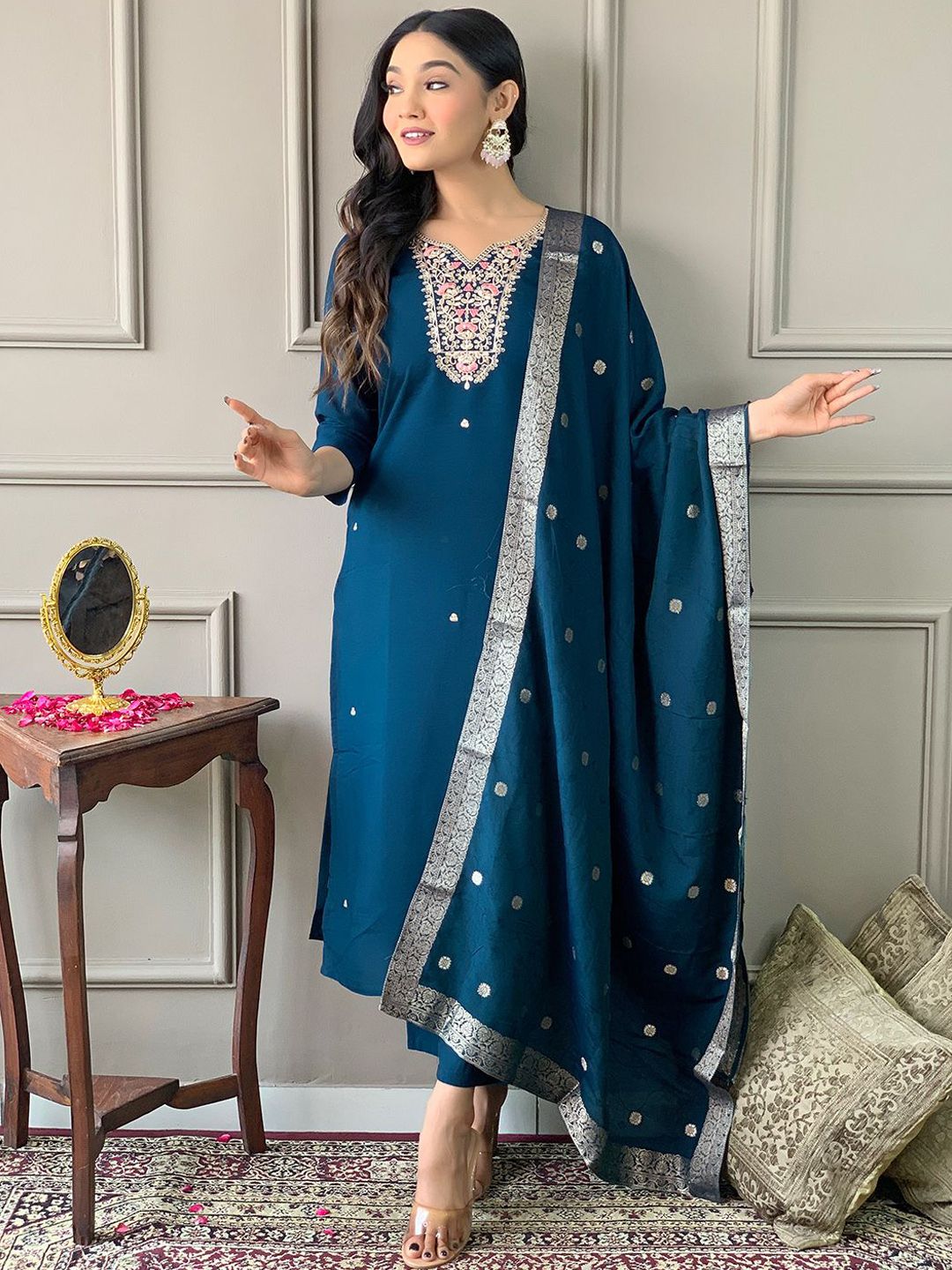 Siya Fashion Women Ethnic Motifs Embroidered Kurta with Trousers & Dupatta