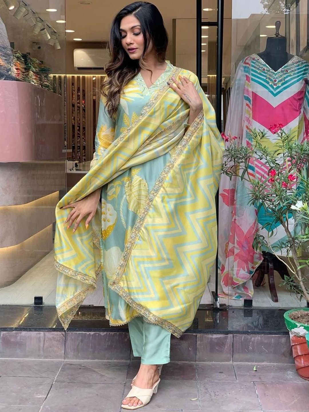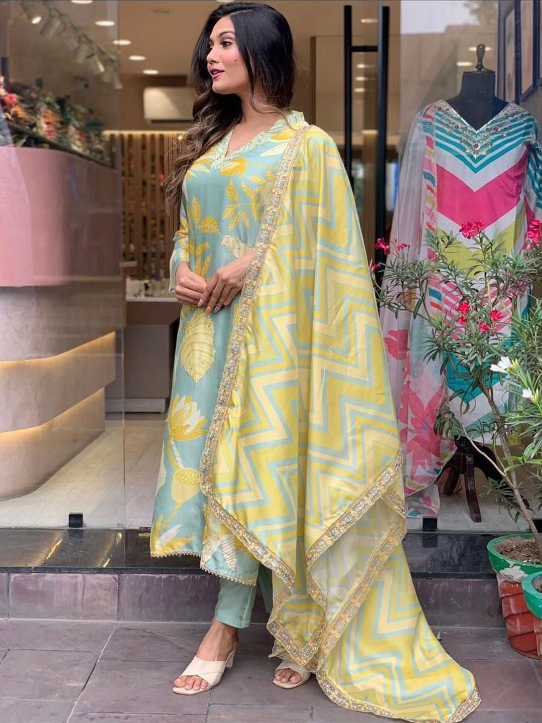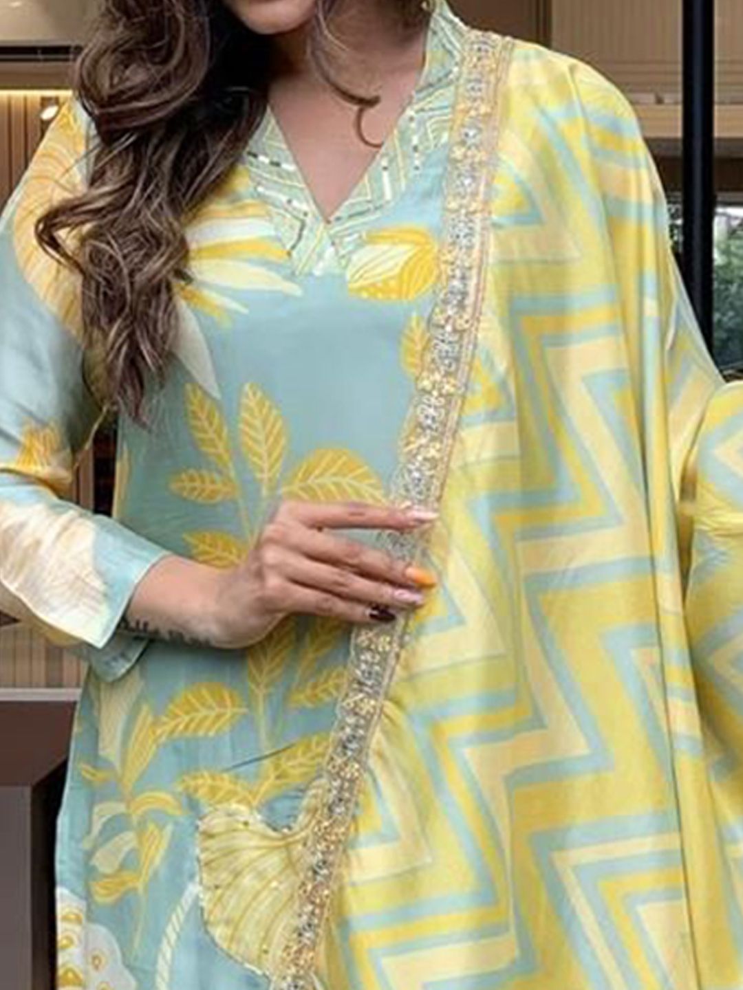 S.K.C Women Ethnic Motifs Embroidered Kurta with Trousers & Dupatta