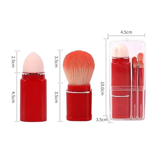 Complete Function 8in1 set of essential brushes to help achieve a fullface look including loose powder brush contouring brush basic smudge brush concealer brush eyeshadow brush angled brush lip brush Compact and portable The mini makeup brushes set is small enough to put into your handbag backpack and other storage bags fit for travel. Retractable and Dustproof The loose powder brush is a retractable design it is connected with the beauty sponge. With a portable PC transparent case dustproof and easy to carry. Sofand Comfortable The brushes hair is made of synthetic fiber, sofand safe, no prick or irritate the skin. The handle is sturdy and hard to break. Package Includes:8 Pieces Makeup Brushes