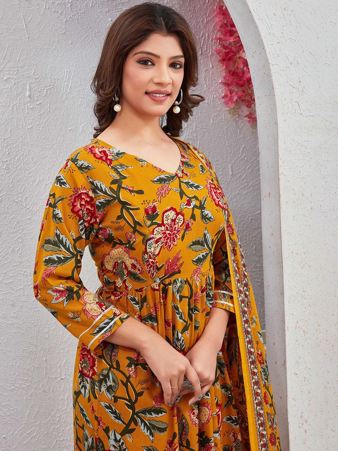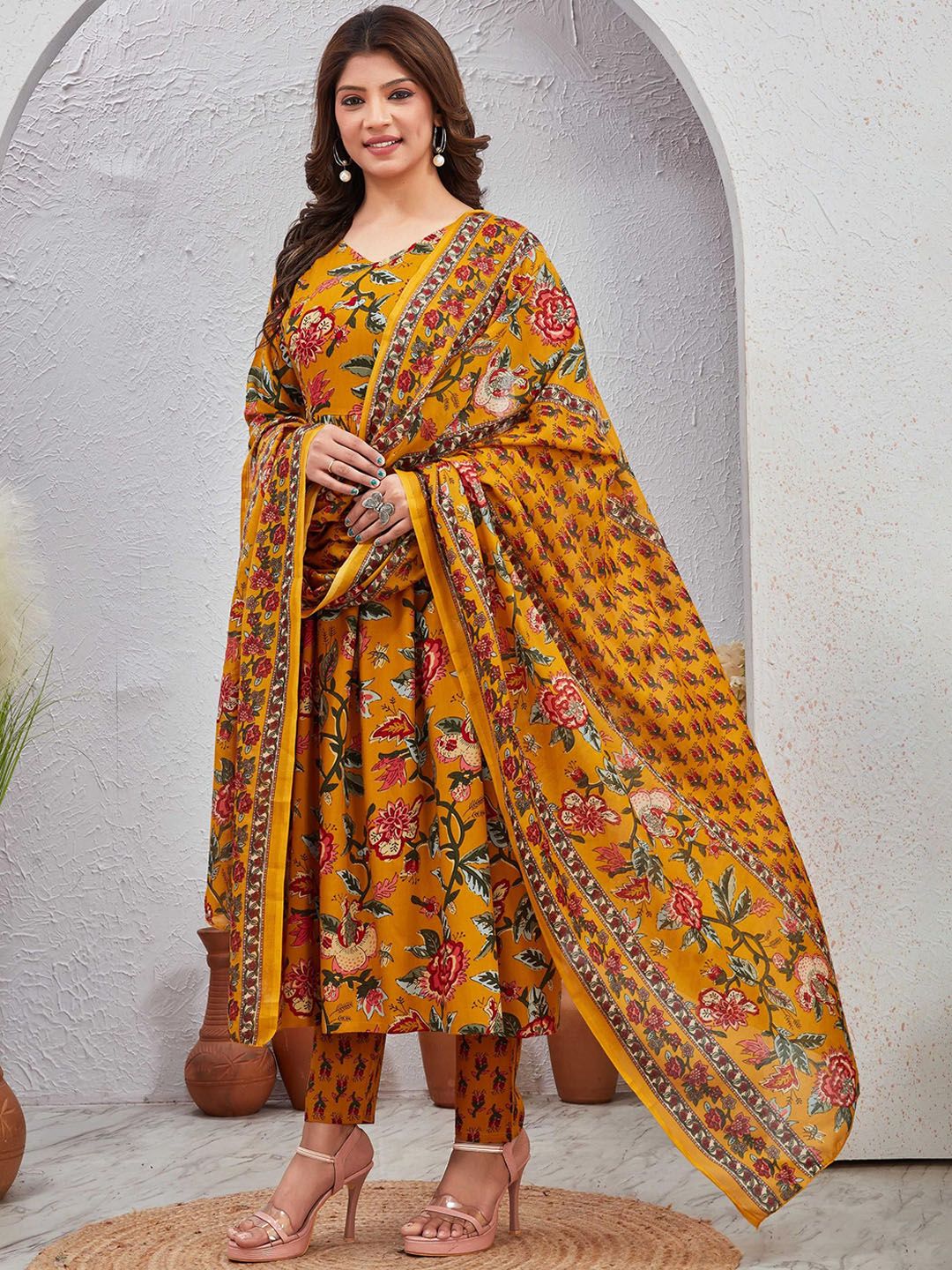 SKY FAB Women Ethnic Motifs Printed Regular Kurti Set With Dupatta