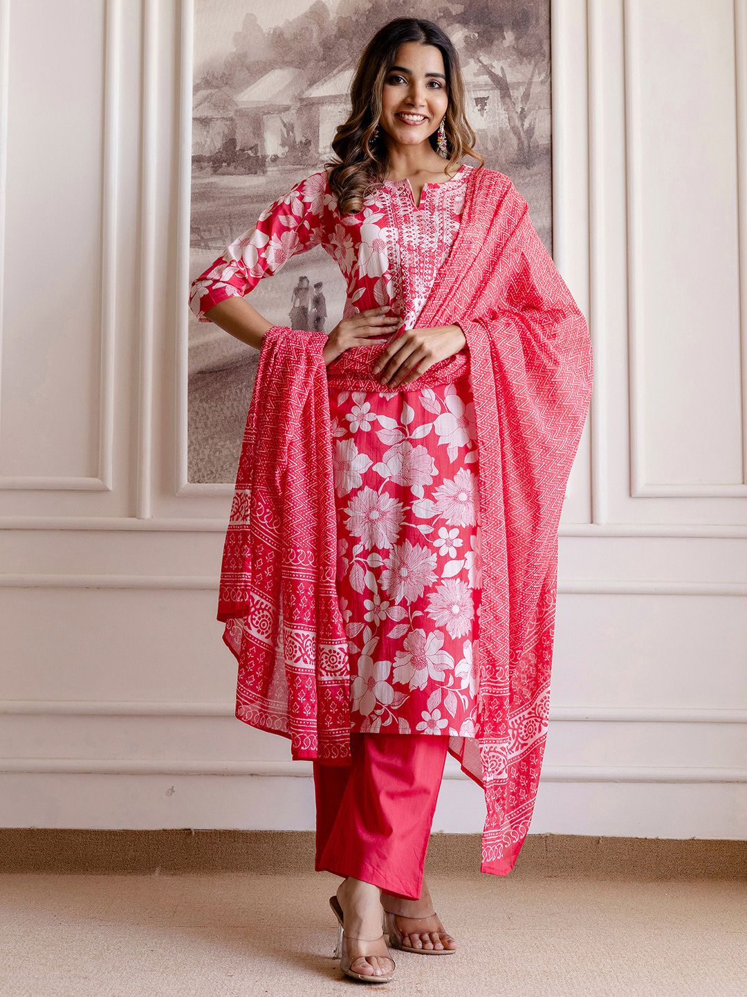 Buy this stylish SKYLEE Floral Printed Mirror Work Straight Kurta With Trousers And Dupatta at Marincart Nepal. This product offers great quality and value. Perfect for those looking for the latest trends in fashion. Get yours now at unbeatable prices.