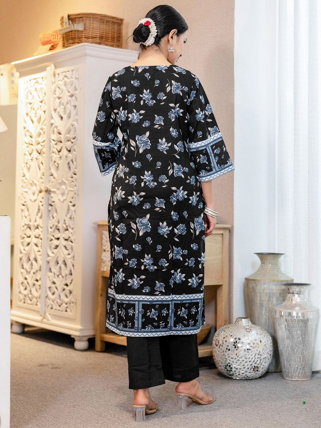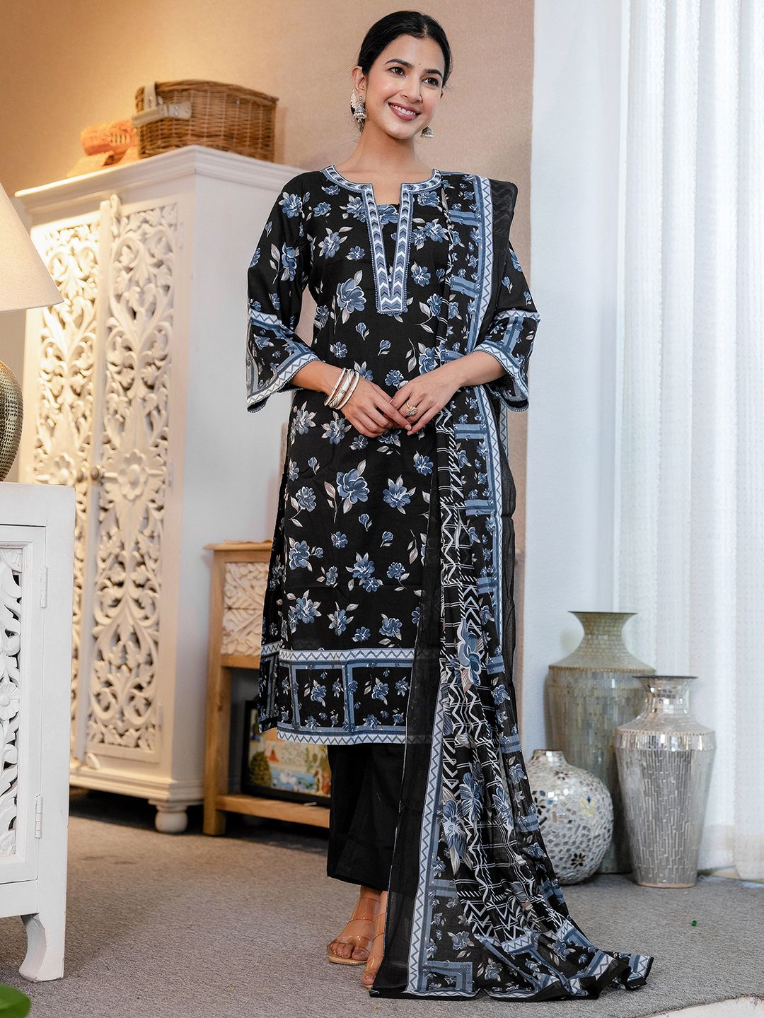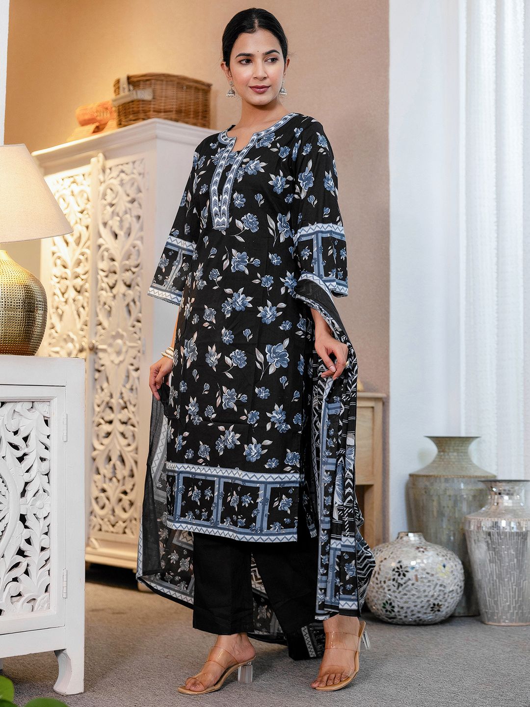 SKYLEE Floral Printed Square Neck Kurta With Trousers & Dupatta