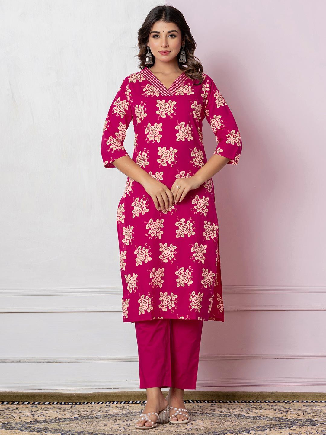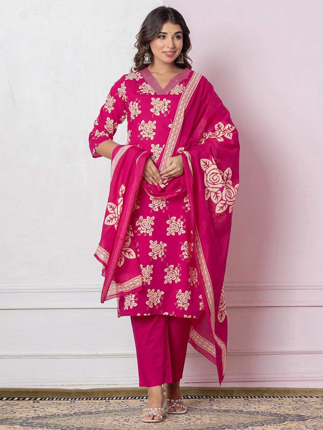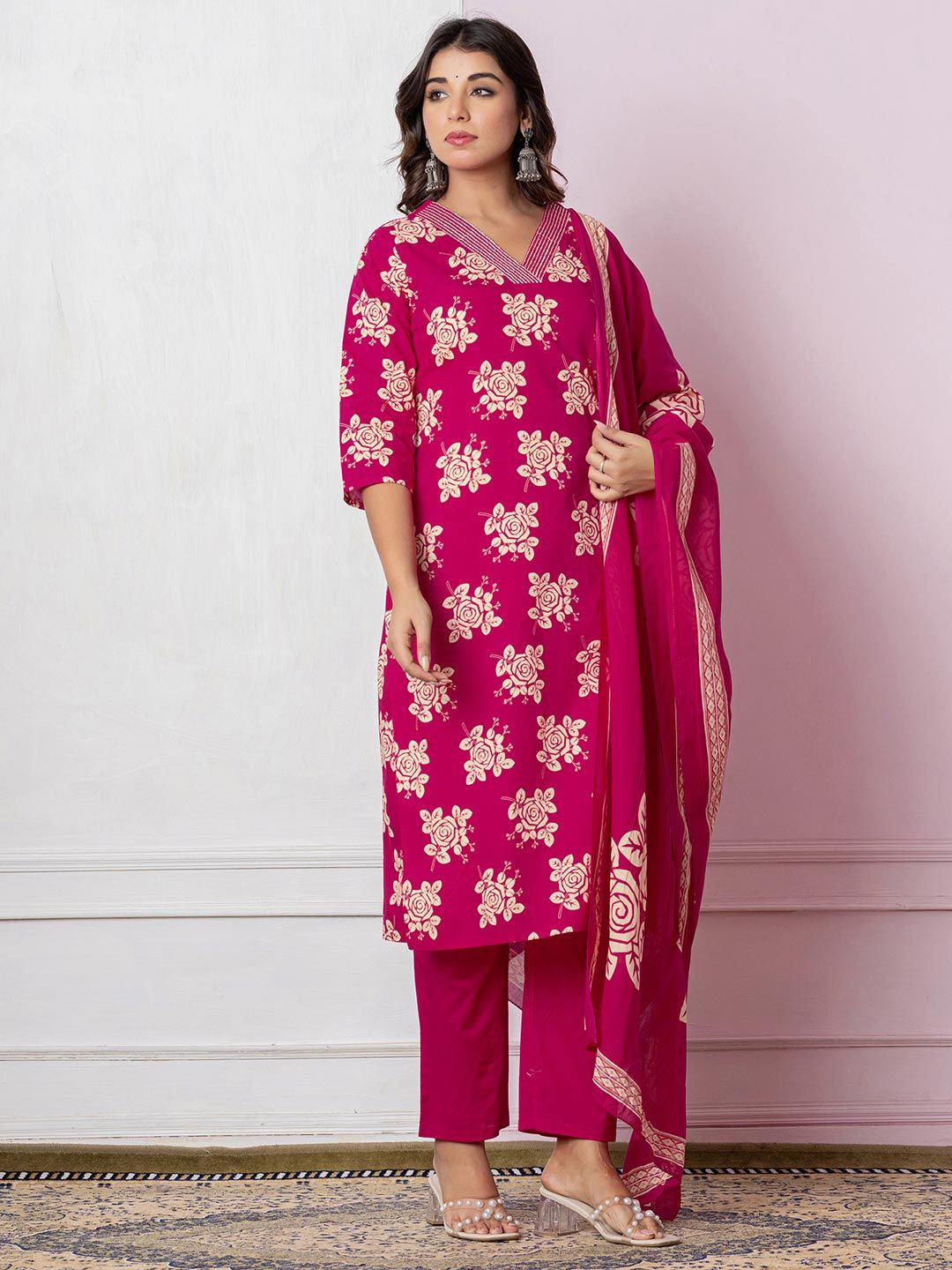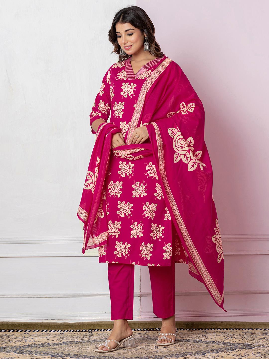 SKYLEE Floral Printed Straight Kurta With Trousers & Dupatta