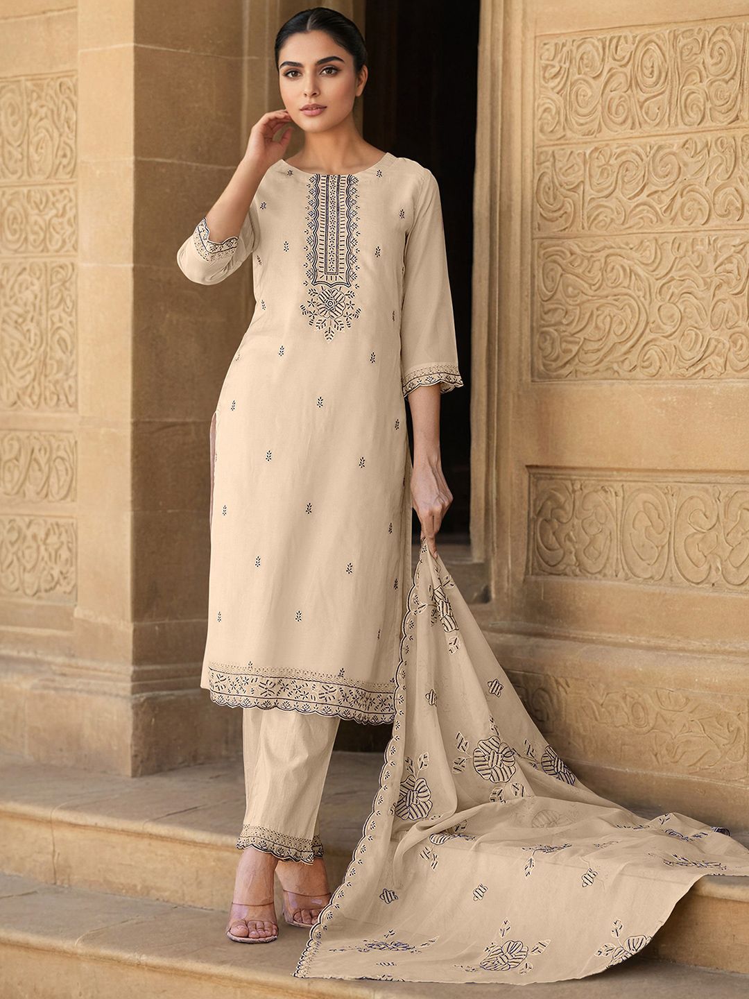 Skylee Pop Women Embroidered Straight Kurta Trousers With Dupatta