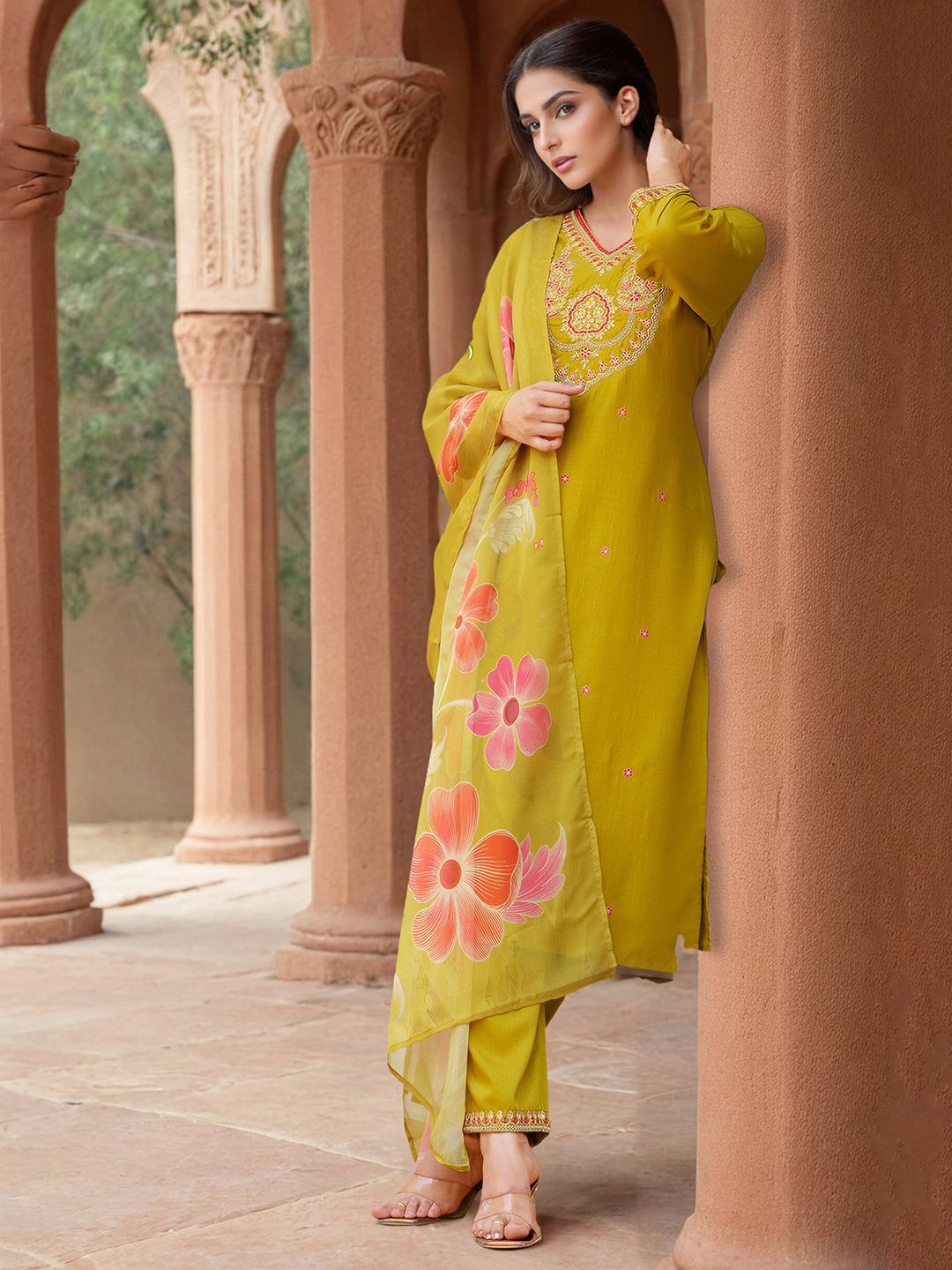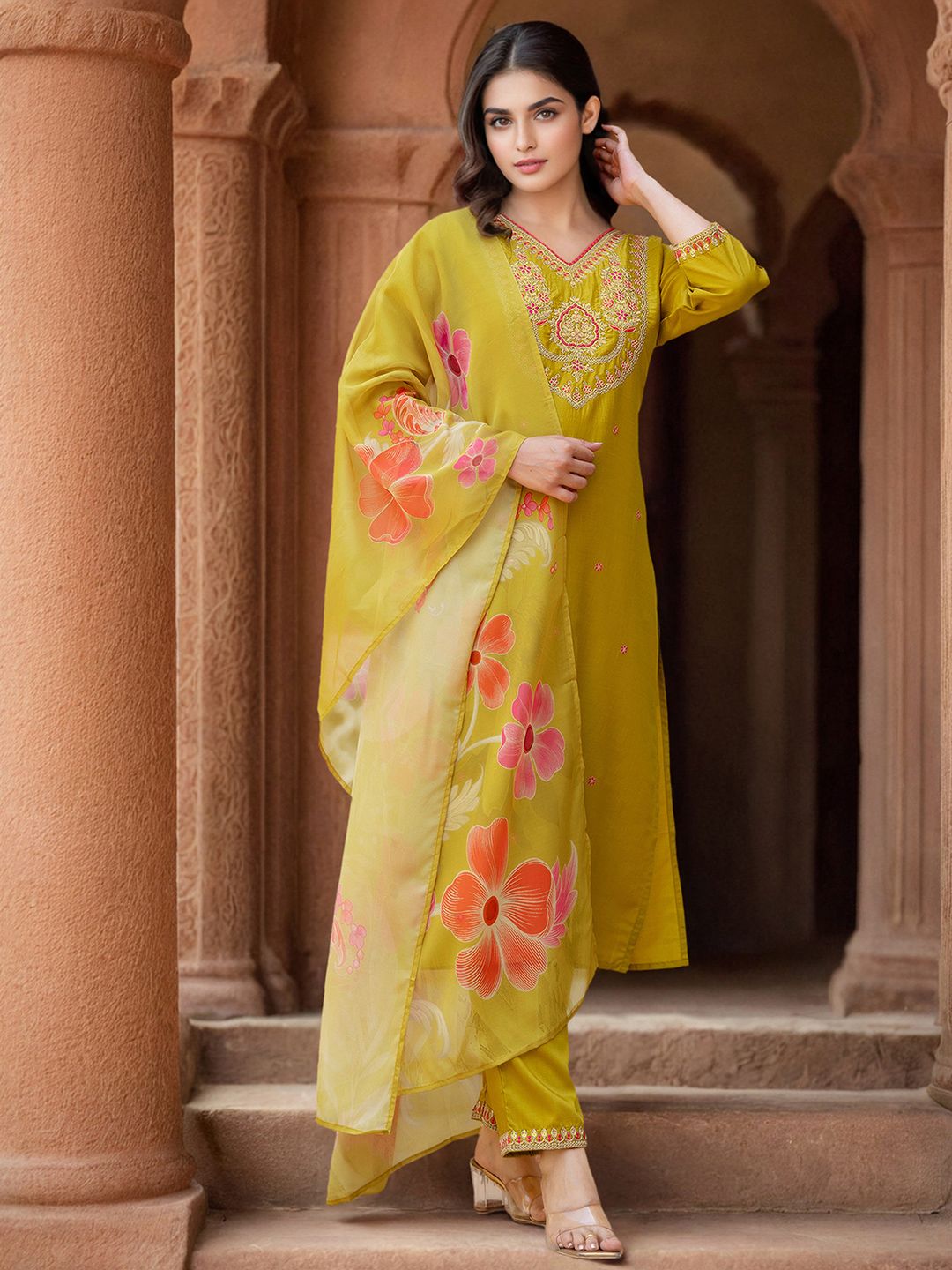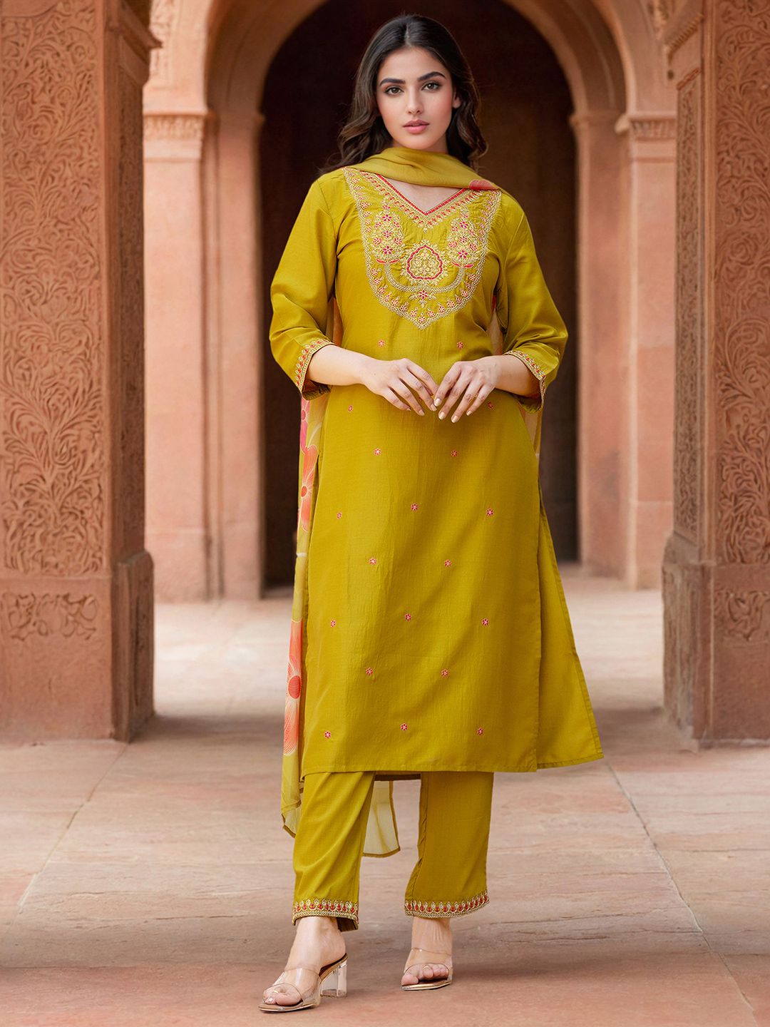 Skylee Pop Women Embroidered Straight Kurta Trousers With Dupatta