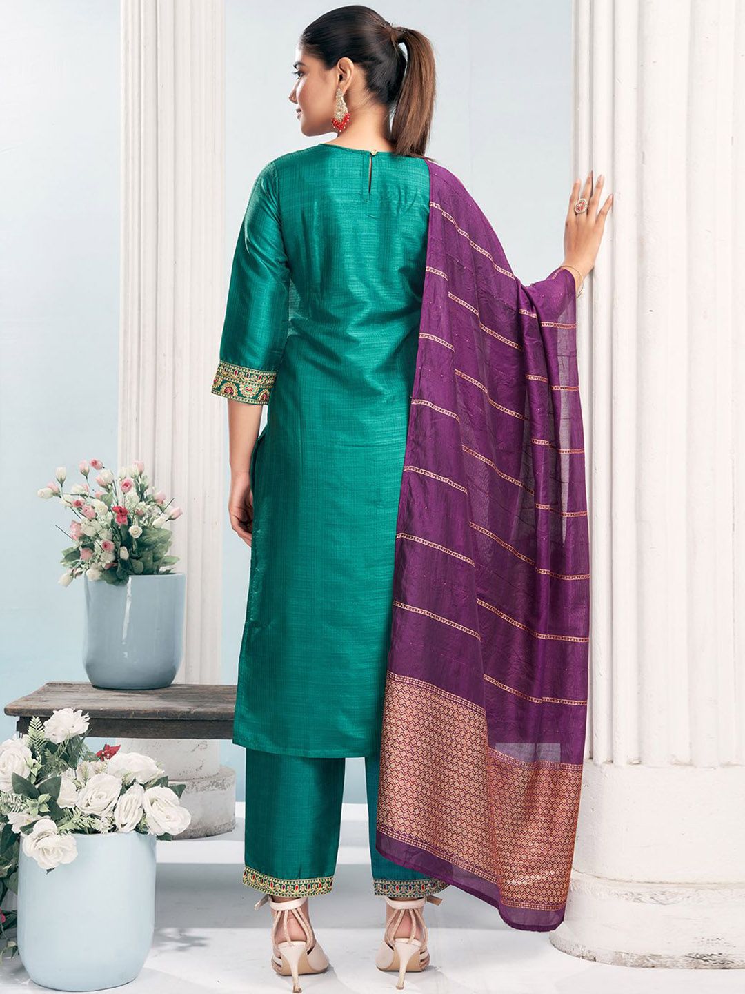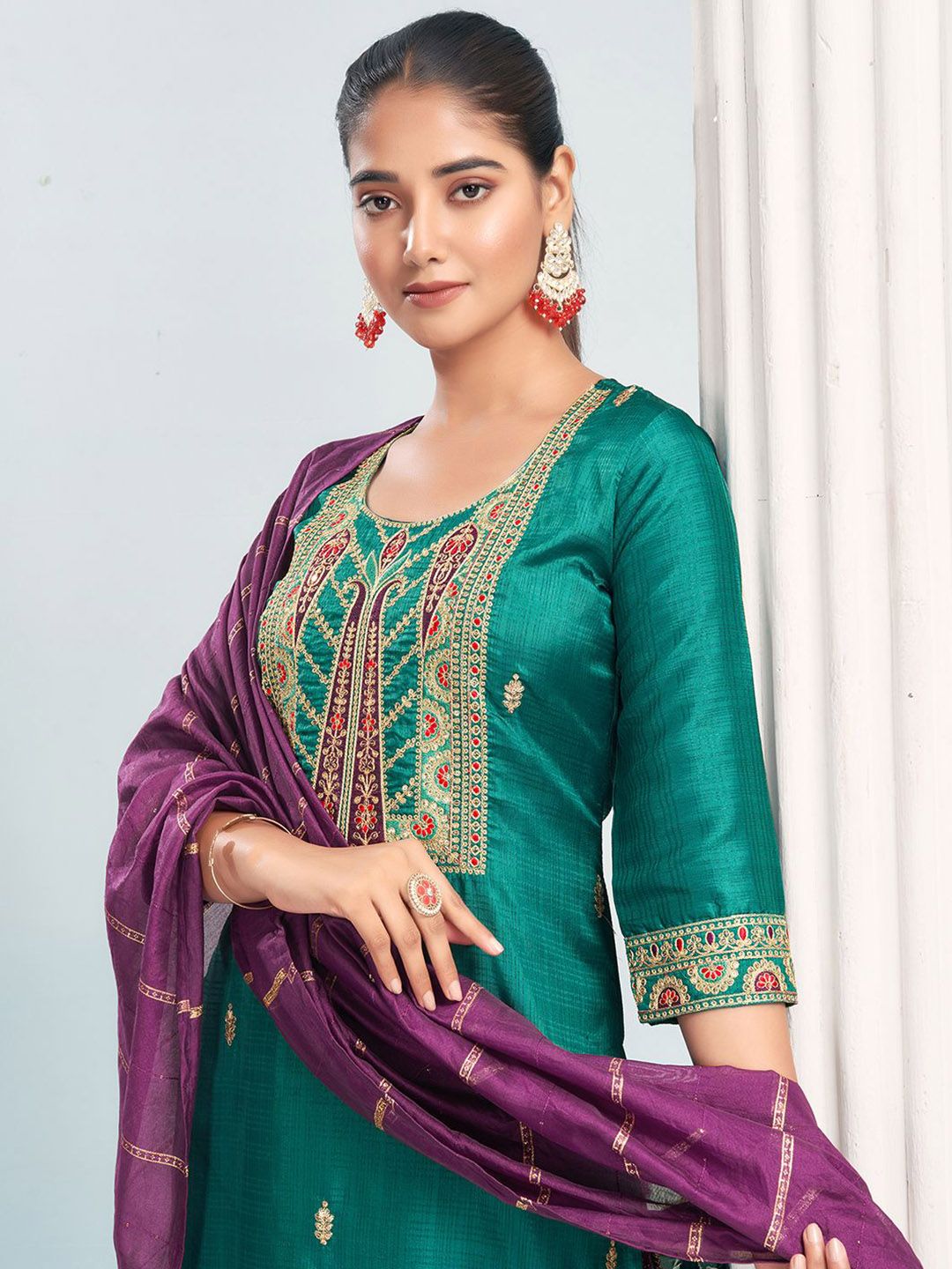 Skylee Pop Women Ethnic Motifs Embroidered Regular Sequinned Kurta with Trousers & Dupatta