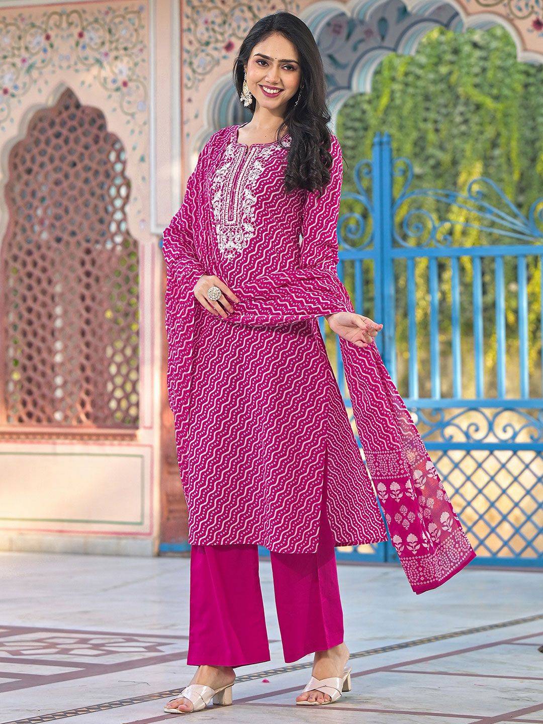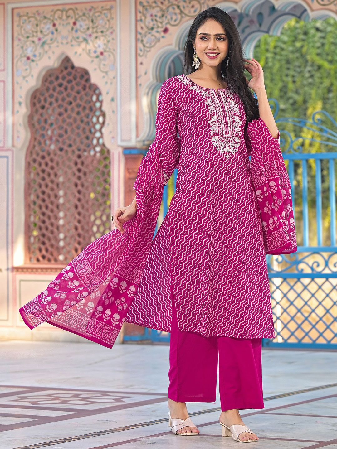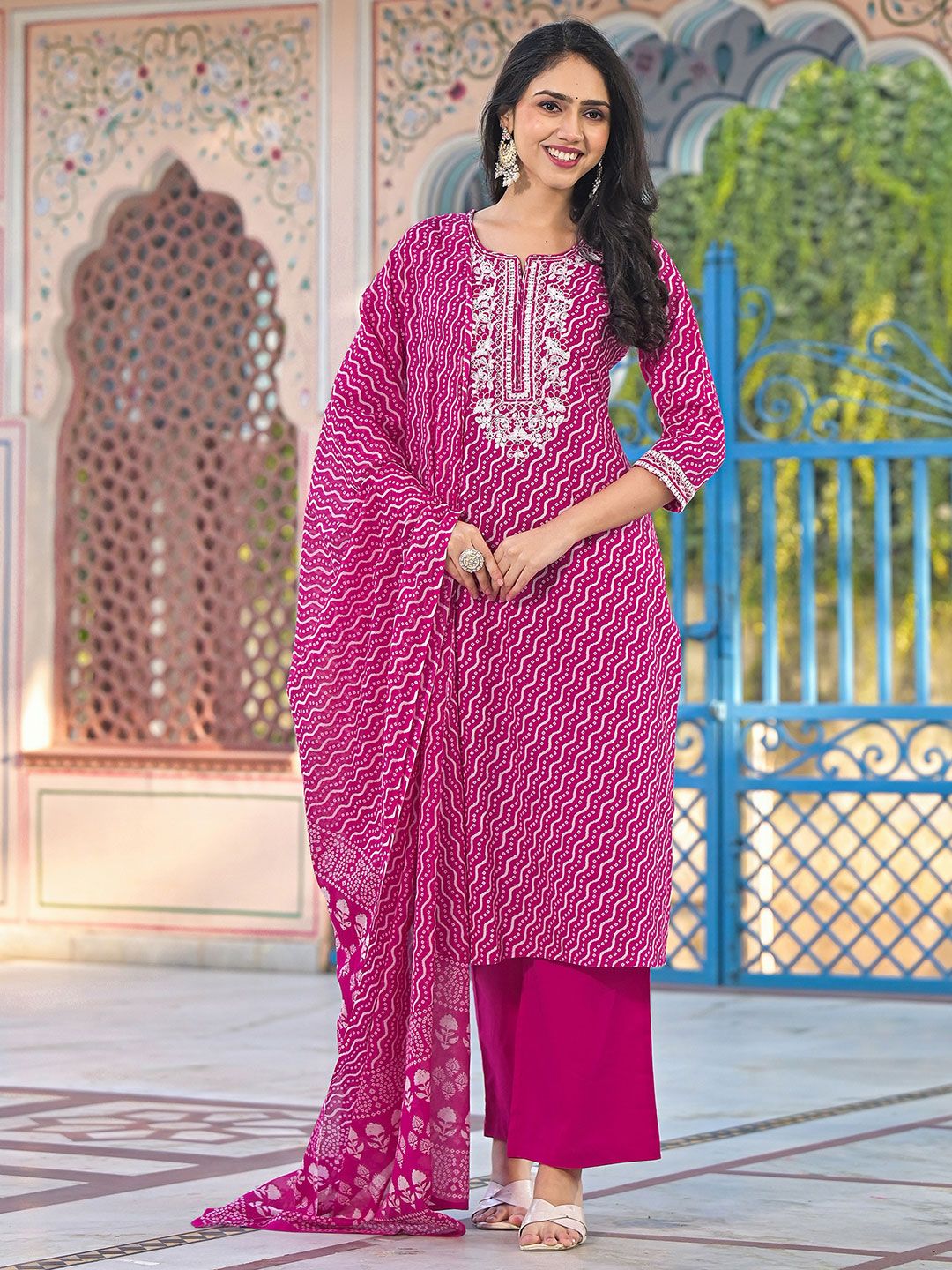 Buy this stylish SKYLEE Women Bandhani Printed Regular Sequinned Kurta with Trousers & Dupatta at Marincart Nepal. This product offers great quality and value. Perfect for those looking for the latest trends in fashion. Get yours now at unbeatable prices.