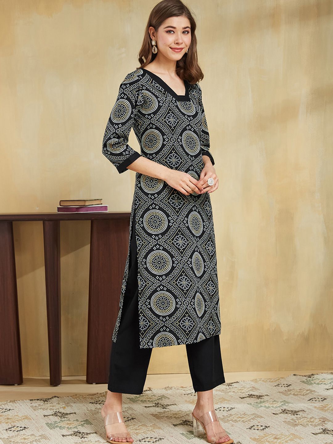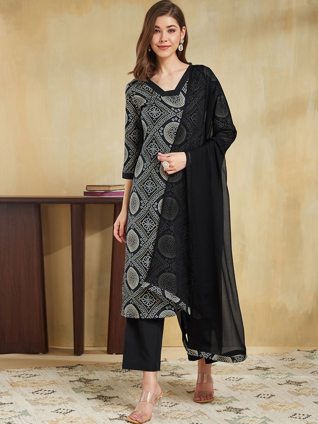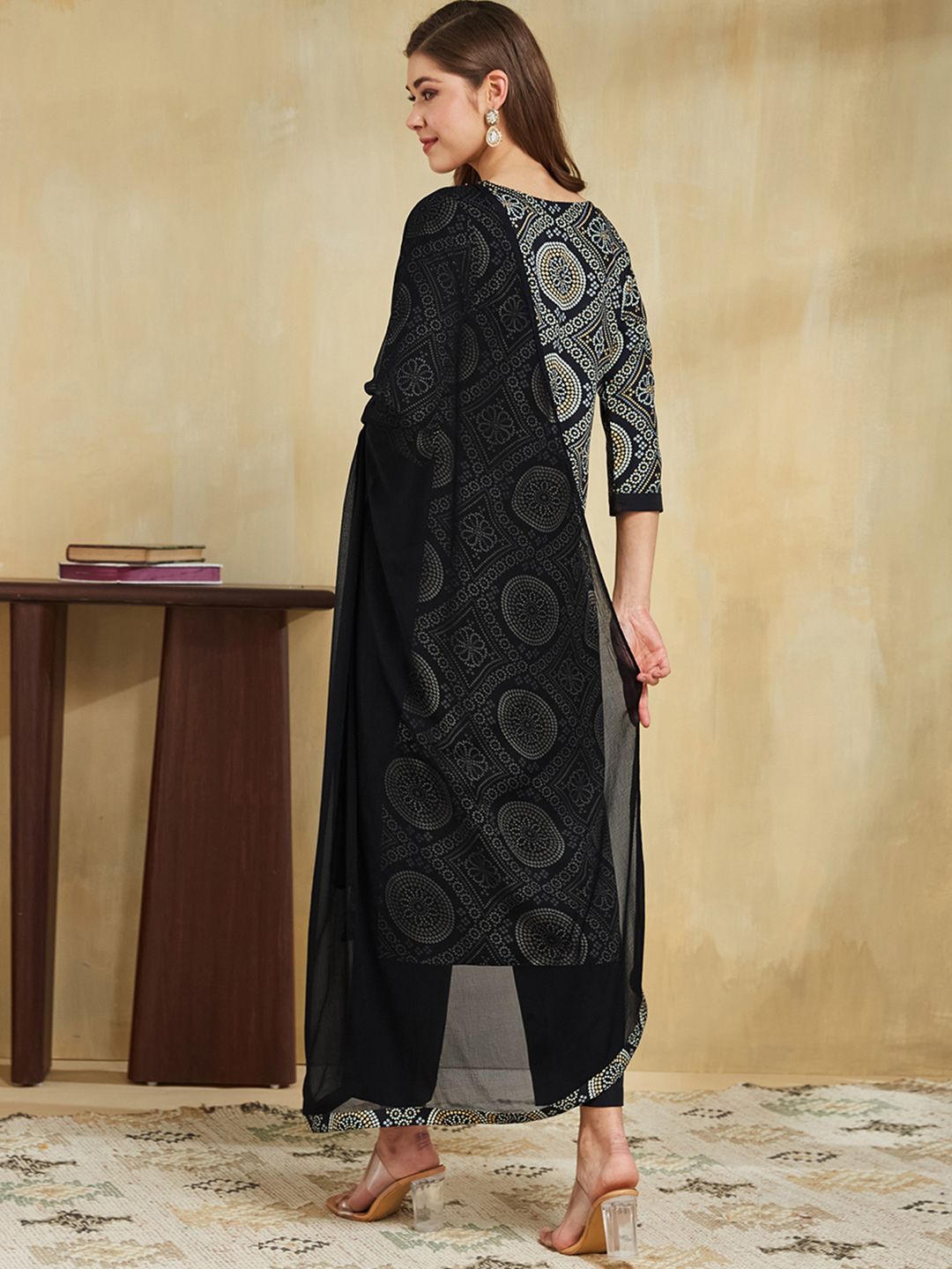 SKYLEE Women Bandhani Printed Regular Silk Crepe Kurta with Trousers & With Dupatta