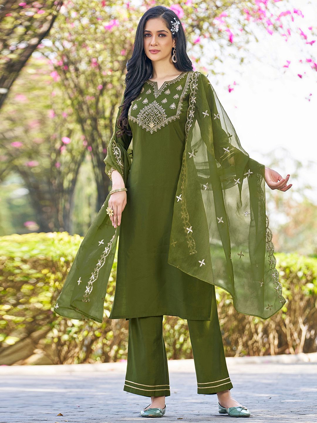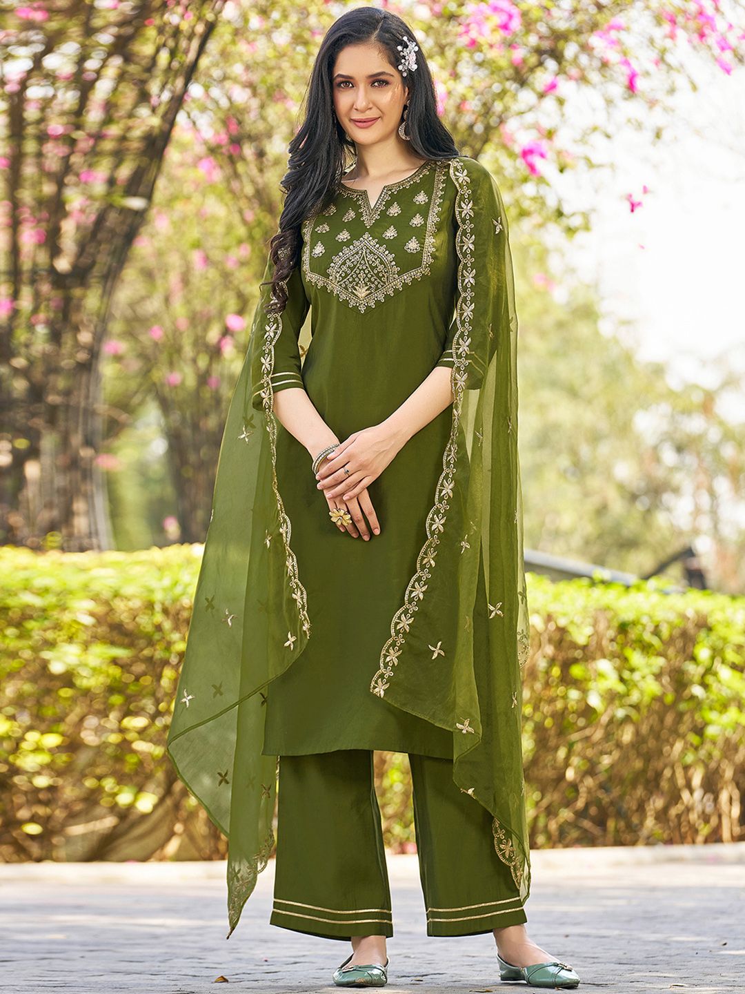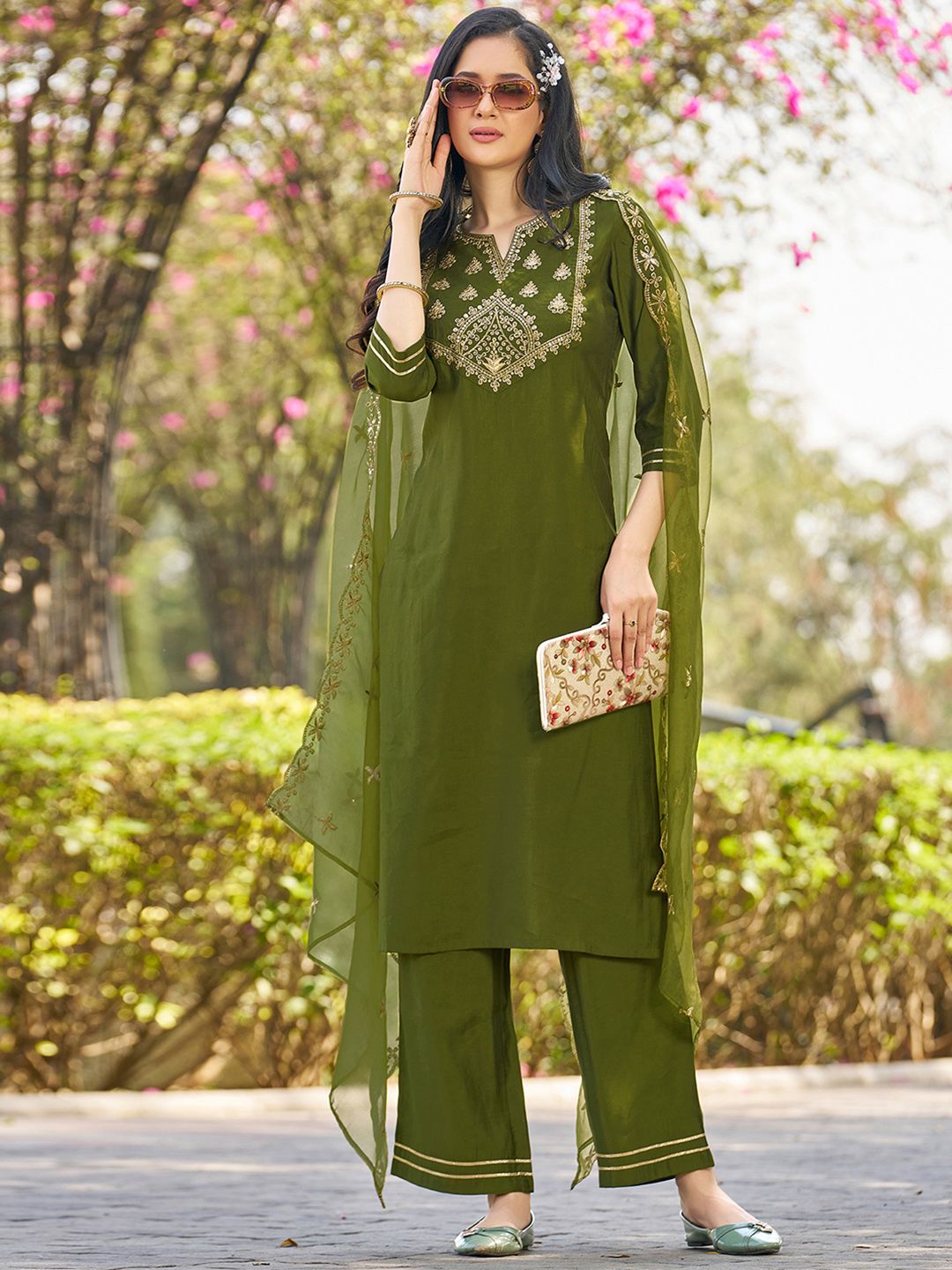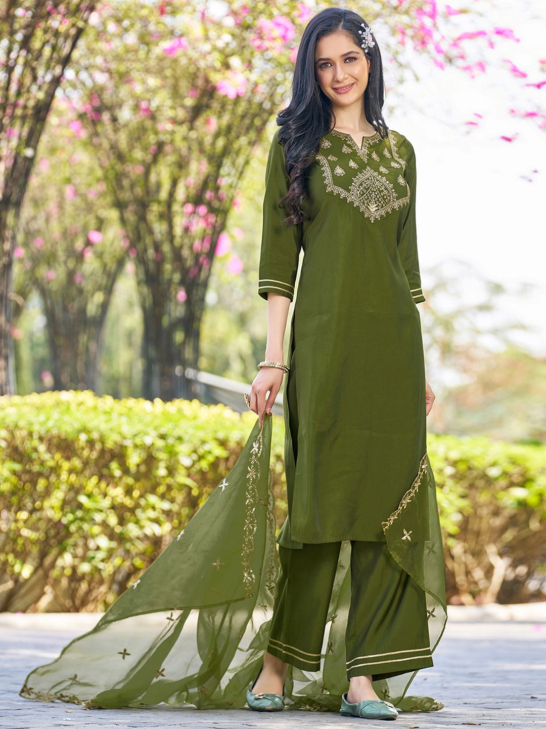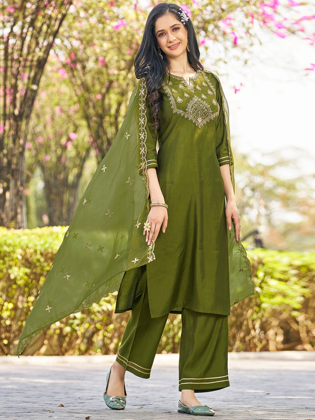 SKYLEE Women Ethnic Motifs Embroidered Kurta with Palazzo & Dupatta