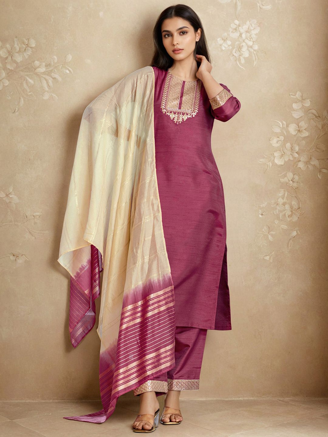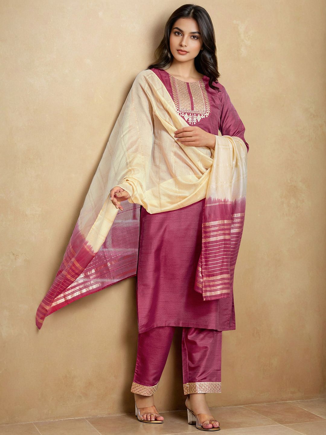 SKYLEE Women Ethnic Motifs Embroidered Kurta with Trousers & Dupatta