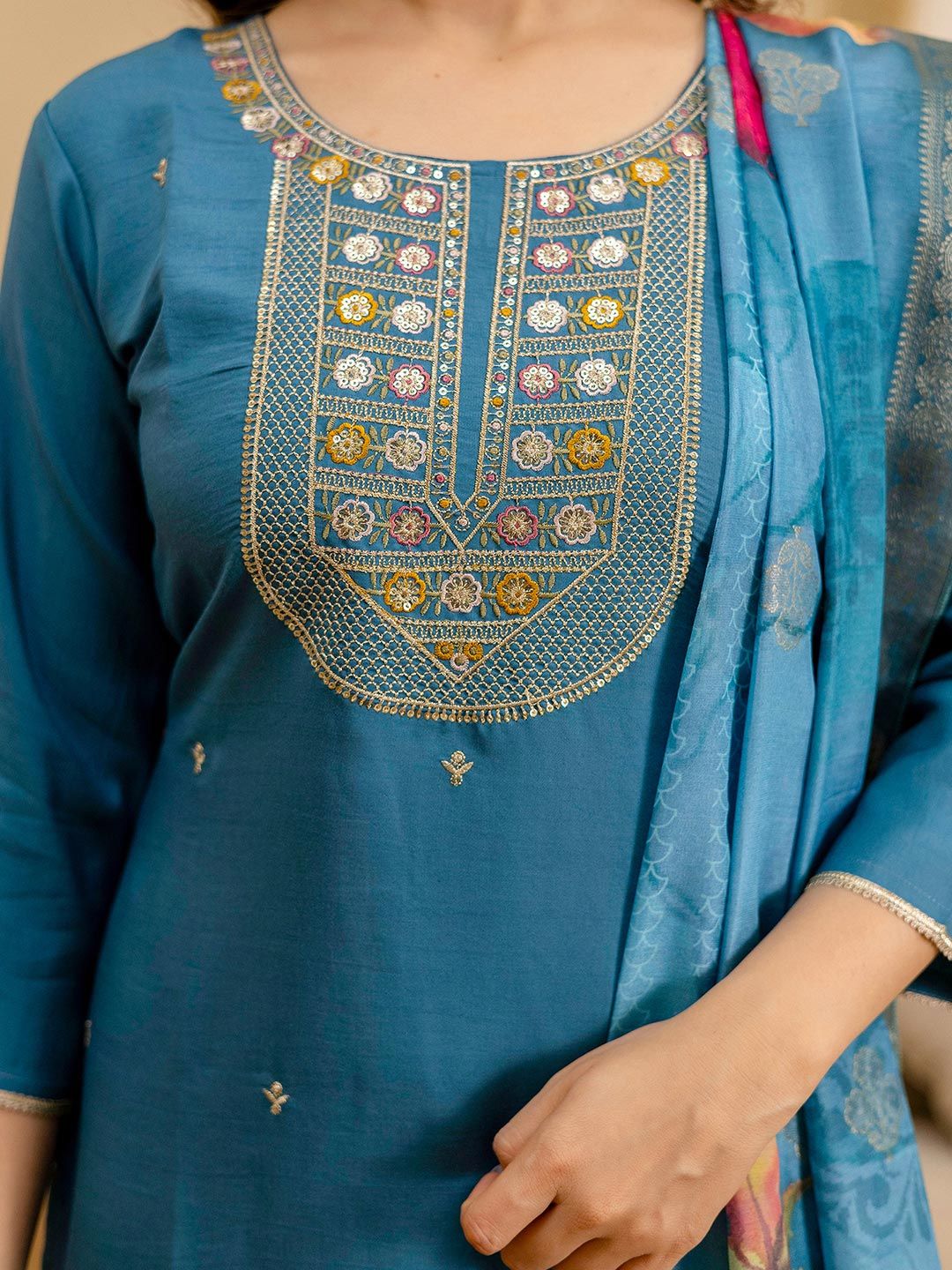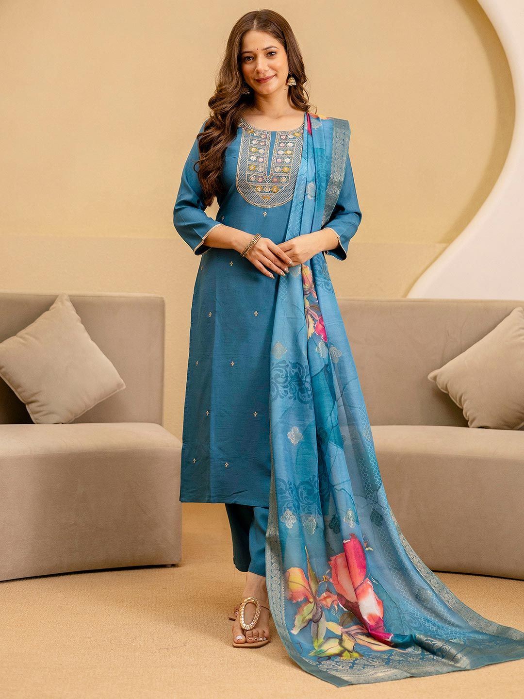 SKYLEE Women Ethnic Motifs Embroidered Regular Thread Work Kurta Set With Dupatta