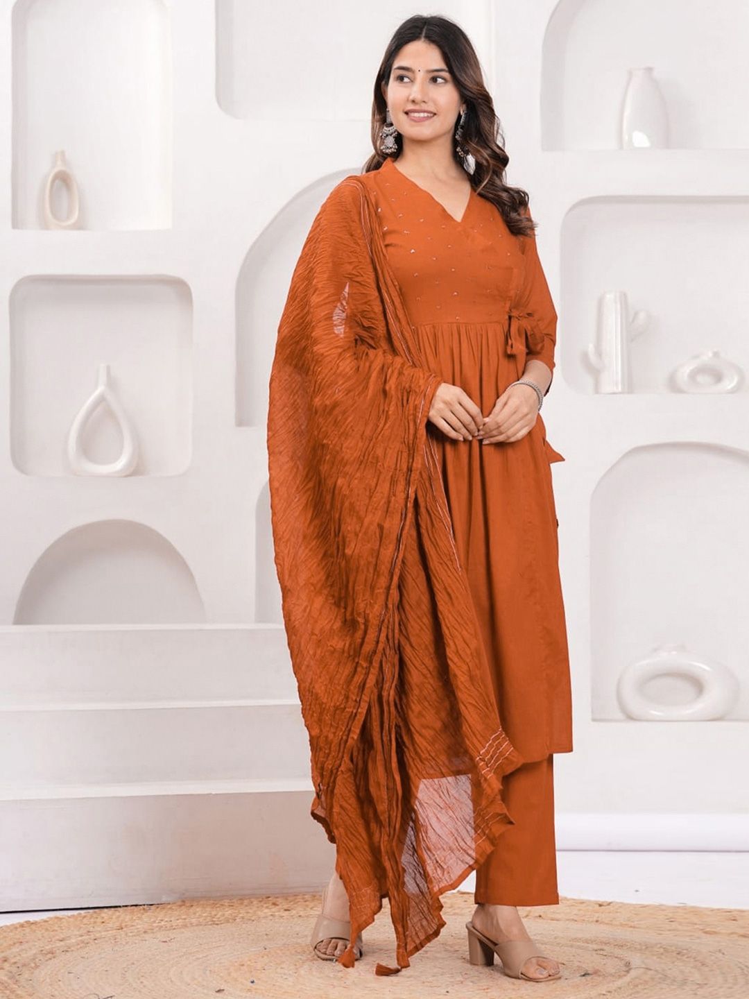 Buy this stylish SKYLEE Women Ethnic Motifs Embroidered Sequinned Anarkali Kurta with Trousers & Dupatta at Marincart Nepal. This product offers great quality and value. Perfect for those looking for the latest trends in fashion. Get yours now at unbeatable prices.